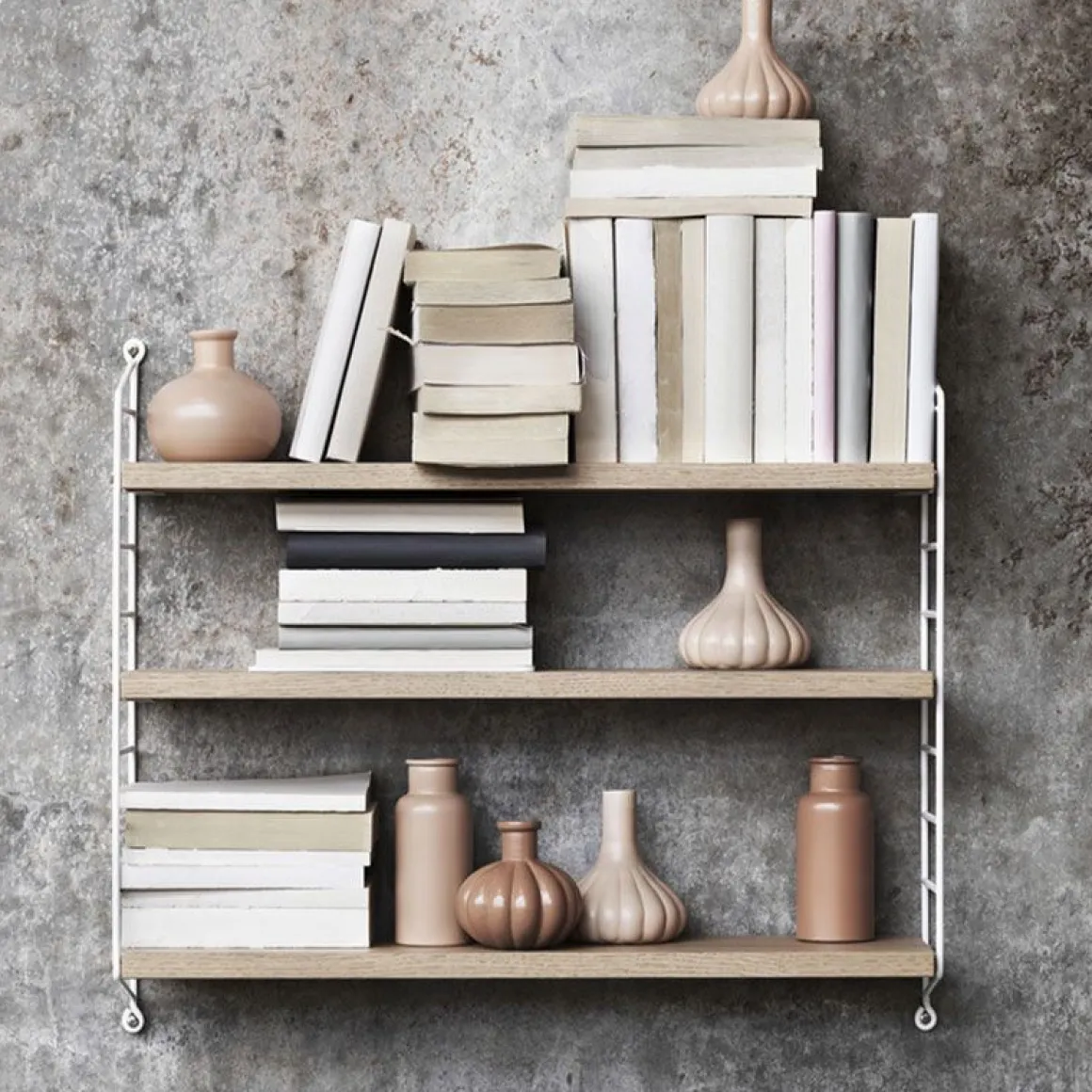 String® Pocket tire son nom de sa taille pratique et pratique. Avec une hauteur de 50 cm, une largeur de 60 cm et une profondeur de 15 cm, vous pourrez placer un String® Pocket n’importe où. Montez-le dans votre chambre et utilisez-le comme table de chevet, placez-le au-dessus d’un placard dans votre couloir ou votre salon ou pourquoi pas installez-le dans la cuisine pour vos livres de cuisine et vos épices. Nous savons que nous avons dit qu’une étagère Pocket est complète, mais cela ne nous empêche pas de jouer avec, tout comme le système d’étagères. Avec deux ou trois packages, vous pouvez créer des solutions créatives où le choix du design et des couleurs vous appartient totalement. Un design monochrome minimaliste ou une touche de couleur avec un mélange de moutarde, de blush et de blanc ? Comme vous pouvez l’imaginer, les options sont infinies!