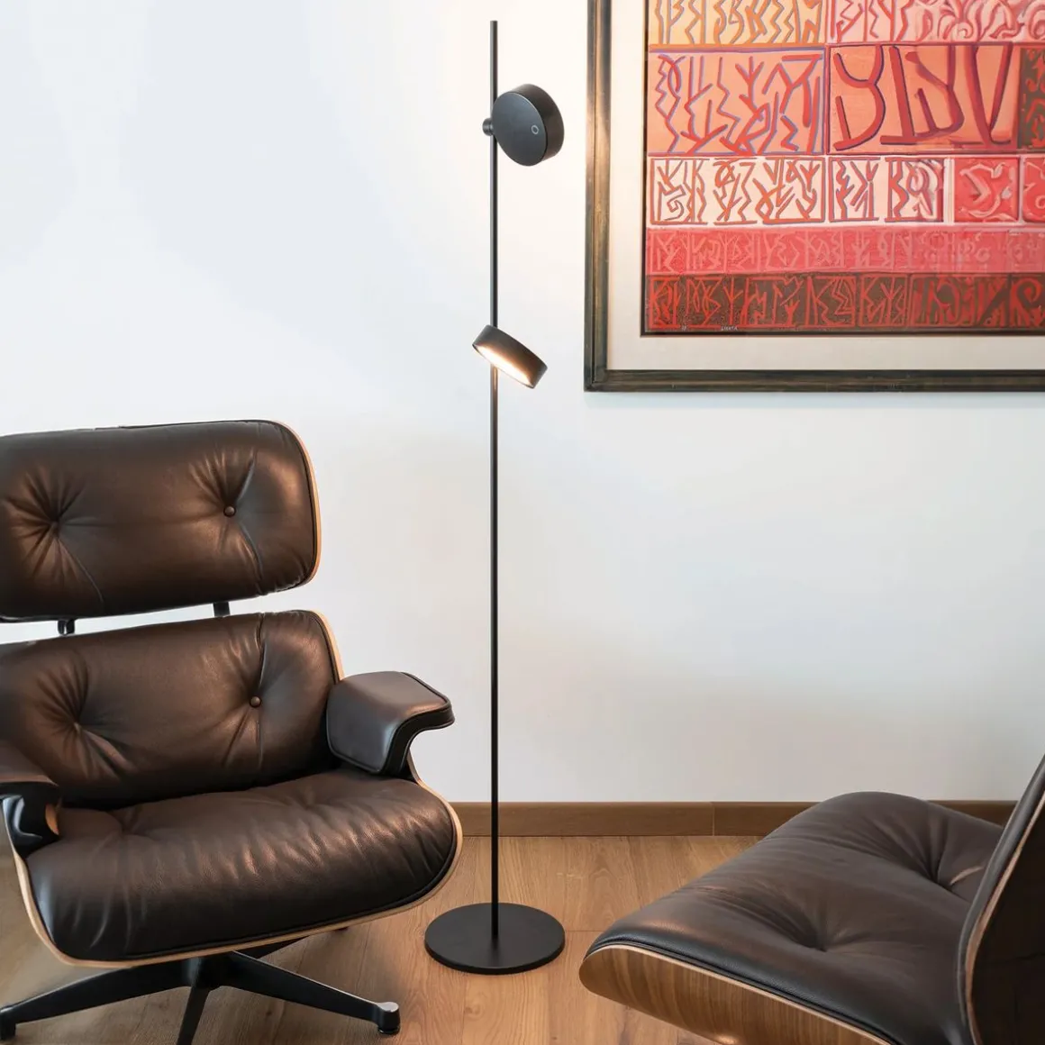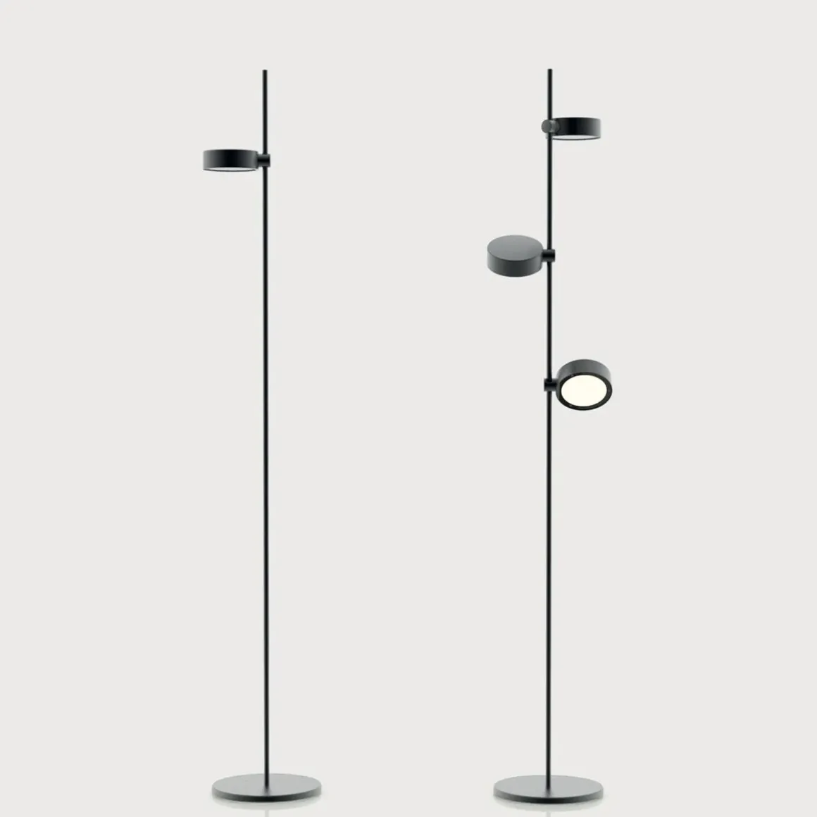 Lampadaire à batteries, portatif et rechargeable, avec trois modules d’éclairage. Le module lumineux est fixé au cadre par un aimant et permet d’orienter la lumière en tournant sur 360°. Une commande tactile en partie supérieure du module permet d’allumer, de régler l’intensité lumineuse (gradation à 4 paliers) et de sélectionner la température de couleur de la lumière. Grâce à un indice de protection élevé, les lampes de la collection peuvent aussi être utilisées à l’extérieur. Elle présente un système de contrôle électronique qui surveille l’autonomie restante et assure un flux lumineux constant jusqu’à l’épuisement de la batterie, ce qui permet d’optimiser la recharge et de toujours l’effectuer correctement. Le module s’enlève et se recharge facilement en le connectant au disque de chargement à contact.