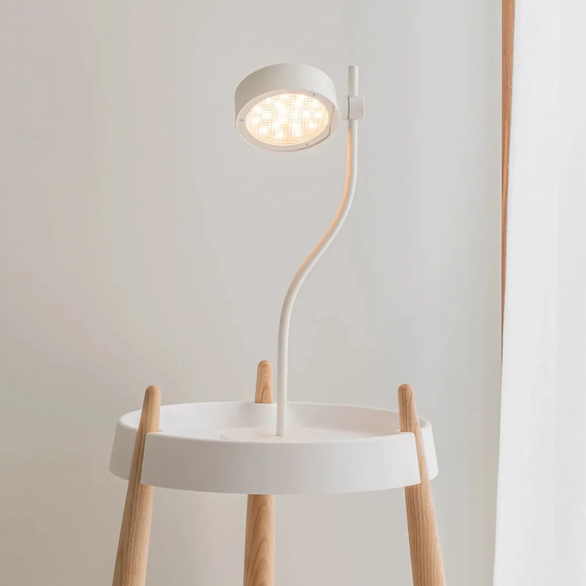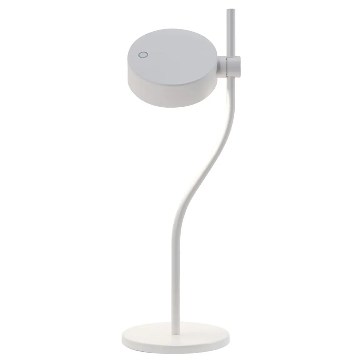 Lampe de table à batteries, portative et rechargeable. Le module lumineux est fixé au cadre par un aimant et permet d’orienter la lumière en tournant sur 360°. Une commande tactile en partie supérieure du module permet d’allumer, de régler l’intensité lumineuse (gradation à 4 paliers) et de sélectionner la température de couleur de la lumière. Grâce à un indice de protection élevé, les lampes de la collection peuvent aussi être utilisées à l’extérieur. Elle présente un système de contrôle électronique qui surveille l’autonomie restante et assure un flux lumineux constant jusqu’à l’épuisement de la batterie, ce qui permet d’optimiser la recharge et de toujours l’effectuer correctement. Le module s’enlève et se recharge facilement en le connectant au disque de chargement à contact.