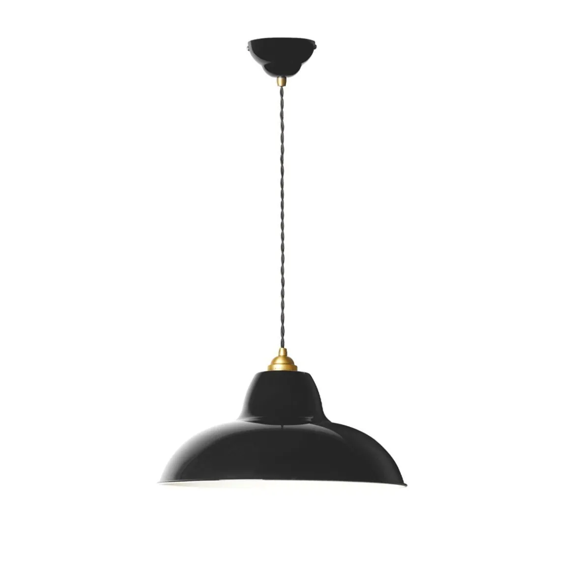 Matériaux : abat-jour en acier, capuchon et raccords en laiton, câble en tissu tissé torsadé, peinture en finition gloss
