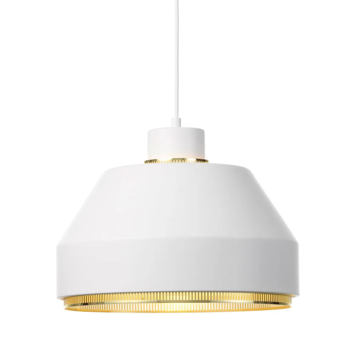 Offrant une lumière douce et chaleureuse, la suspension AMA500 est de taille moyenne et composée de tôle d’acier. Convient comme source de lumière unique au-dessus d’une table à manger ou d’un bureau, sa largeur généreuse diffuse une quantité substantielle de lumière vers le bas. Véritable pièce maîtresse, l’AMA500 est disponible en coloris blanc classique avec des détails en laiton, identique à la suspension suspendue dans la bibliothèque du chef-d’œuvre d’Aaltos Villa Mairea.
