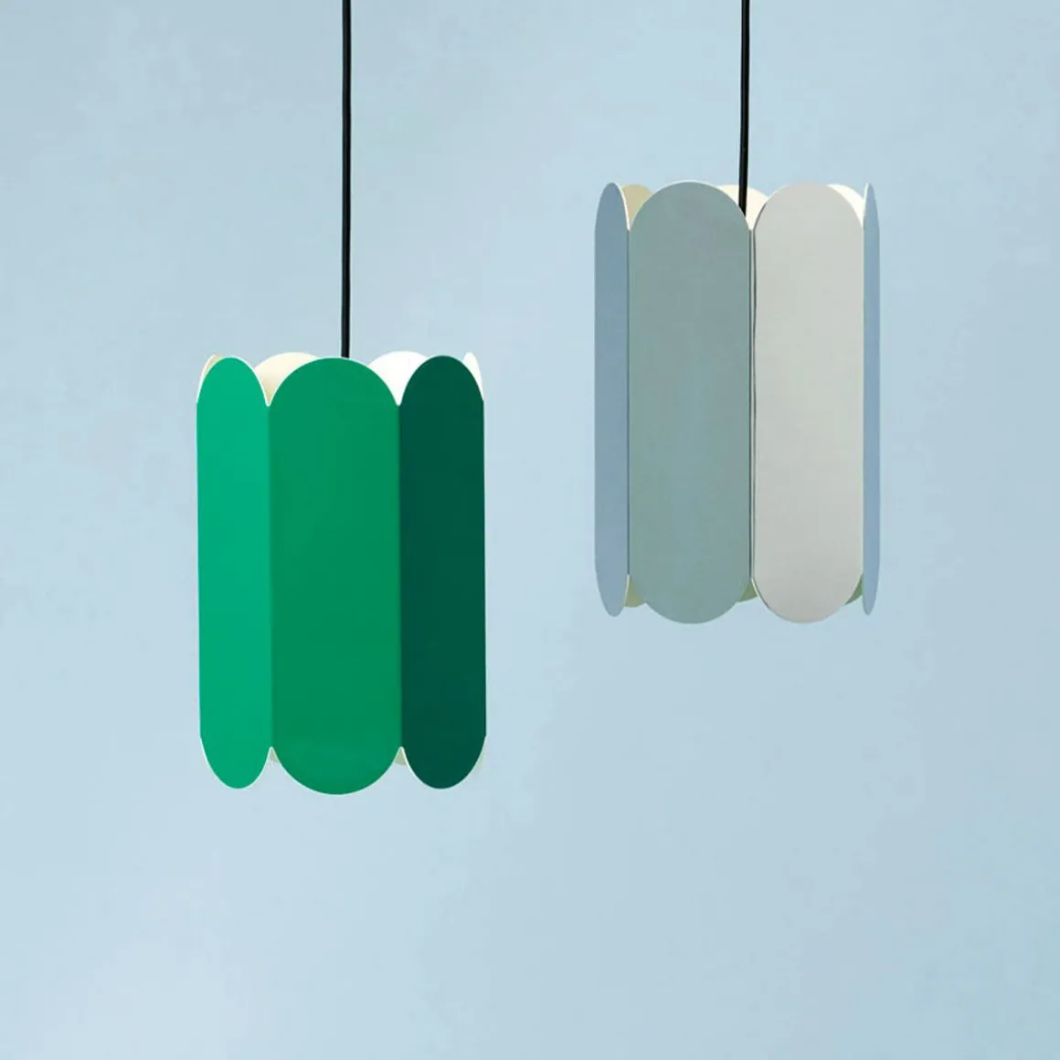Suspension Arcs de Hay. La suspension Arcs fait partie d’une série de motifs arqués créés pour HAY par le duo belge Muller Van Severen. Formée à partir d’une chaîne continue d’arches incurvées qui créent une silhouette élégante et festonnée, la lampe fournit une lumière douce et ambiante de haut en bas qui joue avec les formes et les ombres.