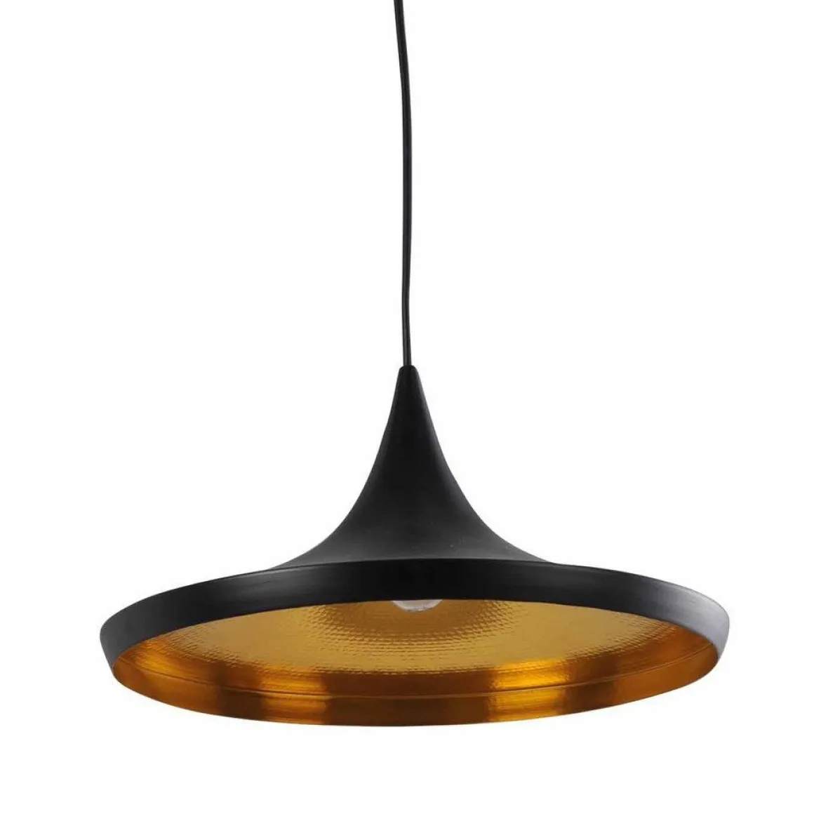 La collection « Beat » se compose de quatre suspensions en laiton aux formes diverses. Leur fabrication nécessite un savoir-faire d’excellence : le laiton est martelé à la main selon une technique traditionnelle utilisée par les maîtres-artisans indiens ! Derrière chaque suspension, on ressent la main de l’artisan, le geste de celui qui l’a fabriquée. L’extérieur de l’abat-jour est peint en noir mat ce qui lui donne un aspect industriel. Le noir profond contraste superbement avec l’intérieur de l’abat-jour en laiton doré. Ce contraste est superbement mis en scène par la diffusion directe et en flux concentré de la lumière. La forme de l’abat-jour nous interpelle par sa silhouette géométrique, nette et extrêmement graphique. Cette forme s’inspire des vases que les Indiens portent sur leur tête pour aller chercher de l’eau…