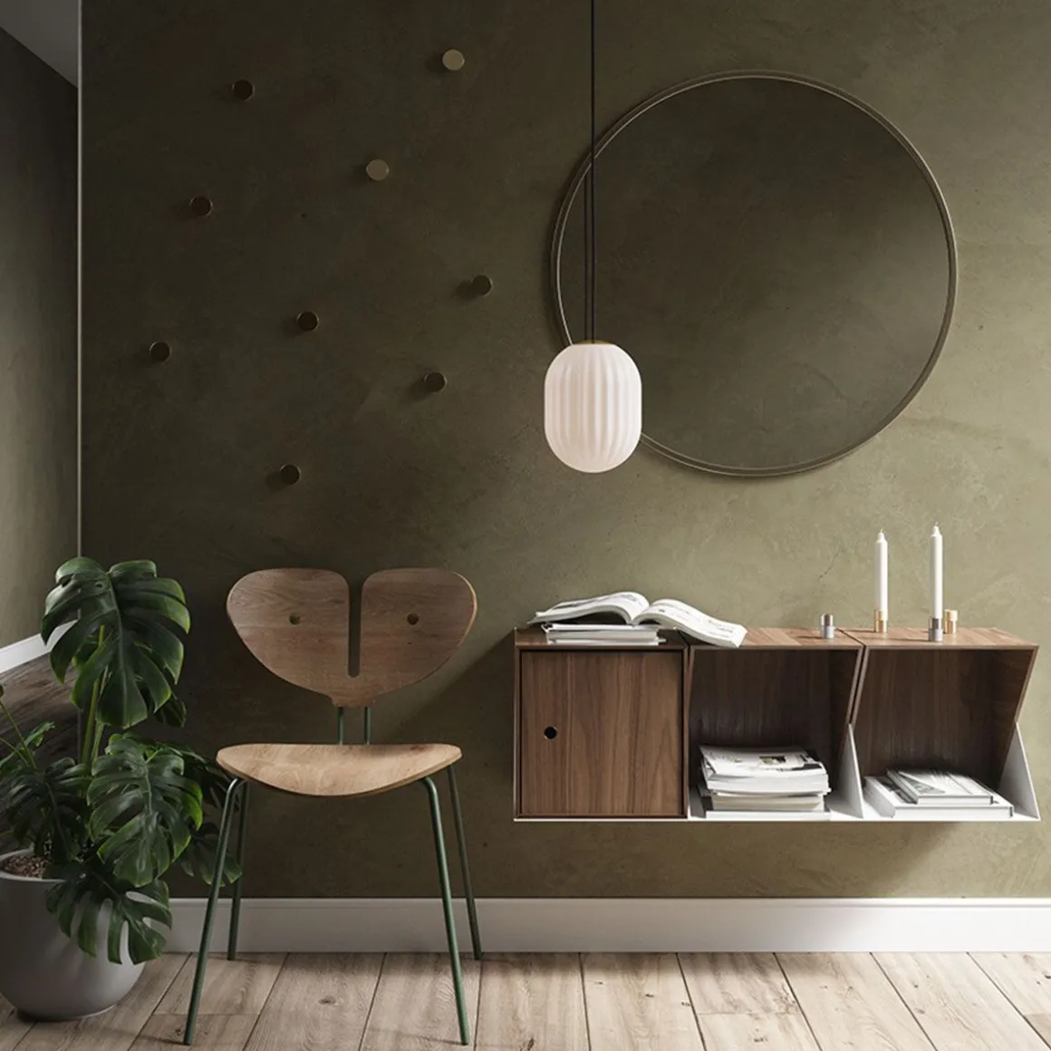 Matériaux : verre opale et cordon en laiton