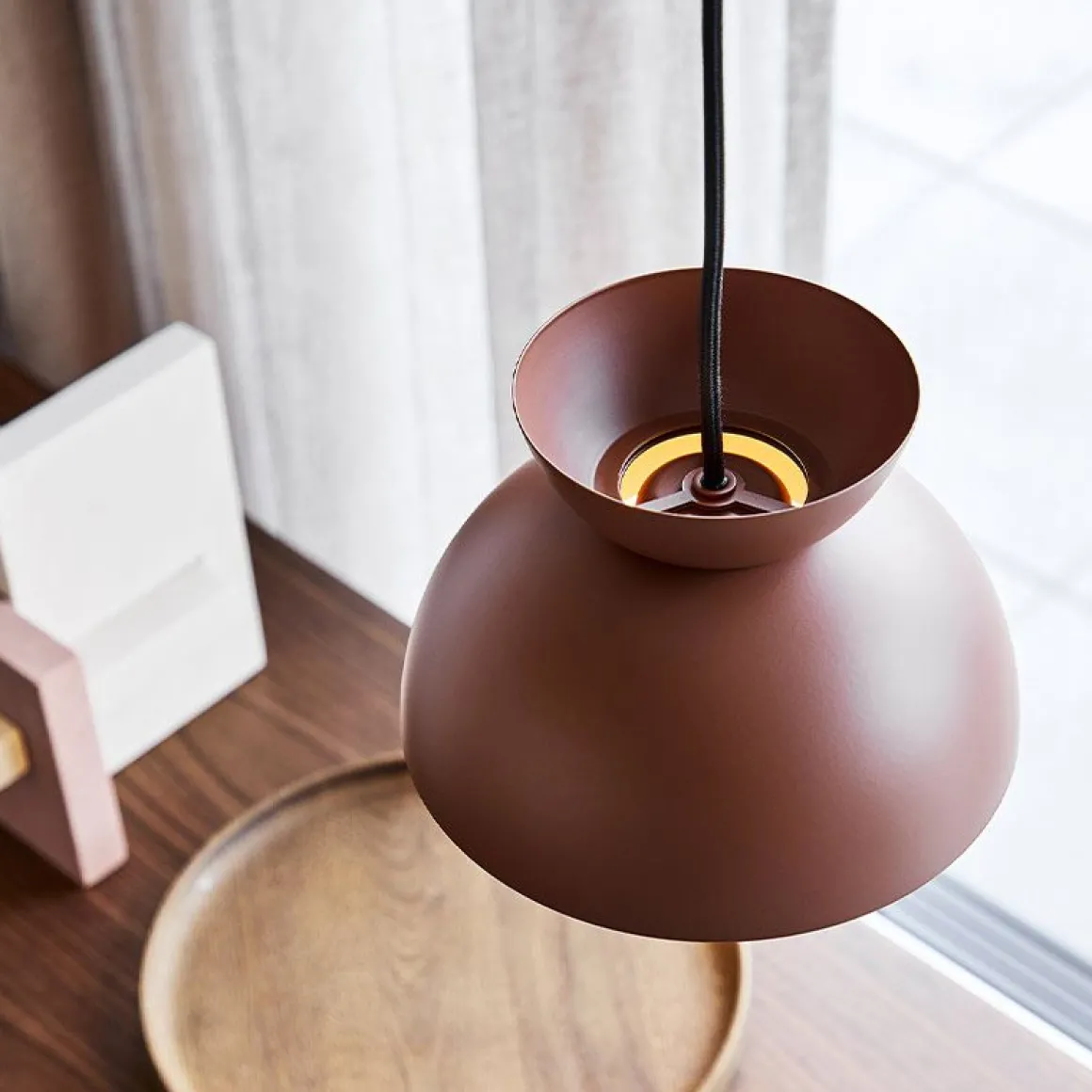 Butterfly se compose de trois demi-dômes présentés de manière inversée. Les formes sphériques des demi-dômes créent un jeu entre les lignes rondes de la lampe. Le dôme supérieur est équipé de trous discrets pour diffuser la lumière douce vers le haut, tandis que la surface sombre du dôme inférieur diffuse une lumière douce atmosphérique et évocatrice, faisant de Butterfly un excellent éclairage pour une variété de paramètres. Vous trouverez une gamme de couleurs à la lampe Butterfly, toutes inspirées par des matériaux naturels et un enthousiasme pour le langage du design nordique. Nous nous inspirons des couleurs des feuilles sur les arbres et des roseaux au bord d’un lac et les couleurs sont légèrement poussiéreuses donnant ainsi aux pendentifs un aspect doux et invitant.