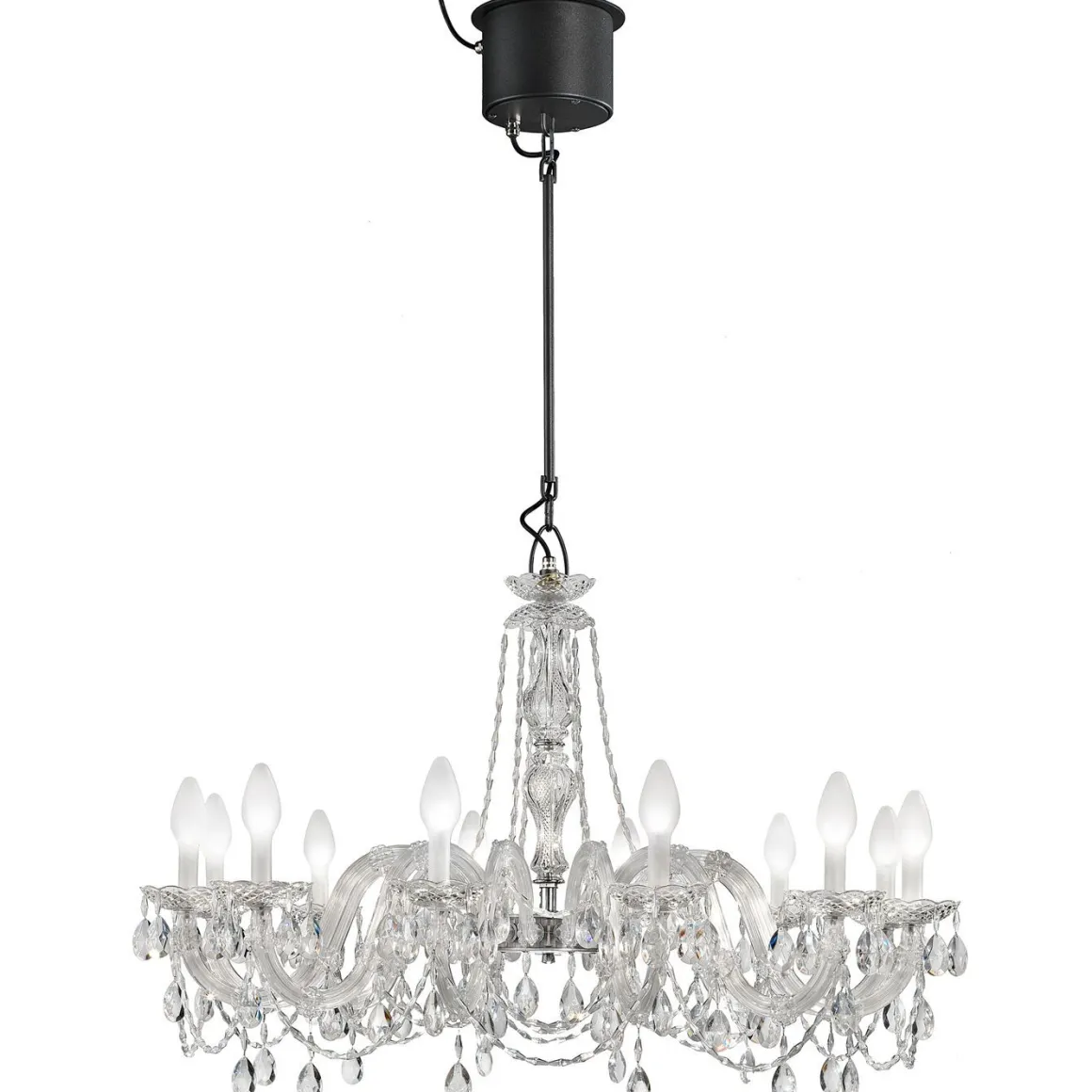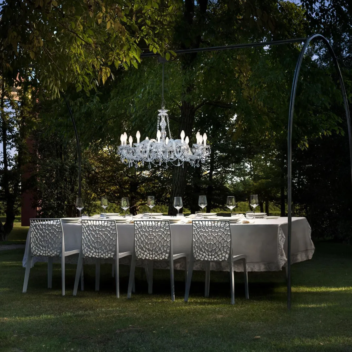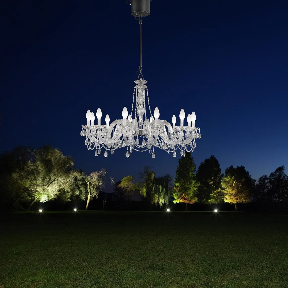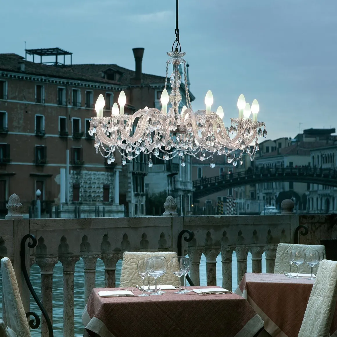 Lustre Vénitien, Masiero Drylight S12 est une superbe suspension pour extérieur qui n’a pas peur de l’eau grâce à son indice de protection IP65. Avec ses 12 bras lumineux, ce luminaire illumine avec douceur l’endroit où il est installé. Les bras de ce lustre sont fabriqués à partir d’une matière plastique spéciale provenant de l’industrie automobile, elle est caractérisée par son extrême robustesse et sa résistance aux agents atmosphériques, et surtout, ne jaunit pas. Les « bougeoirs » de Drylight est réalisée à partir d’un verre spécial chargé de fibres de plastique à base de nylon. Ce luminaire est capable de résister à des rafales de vent de plus de 90Km/h sans dommage structurel.
