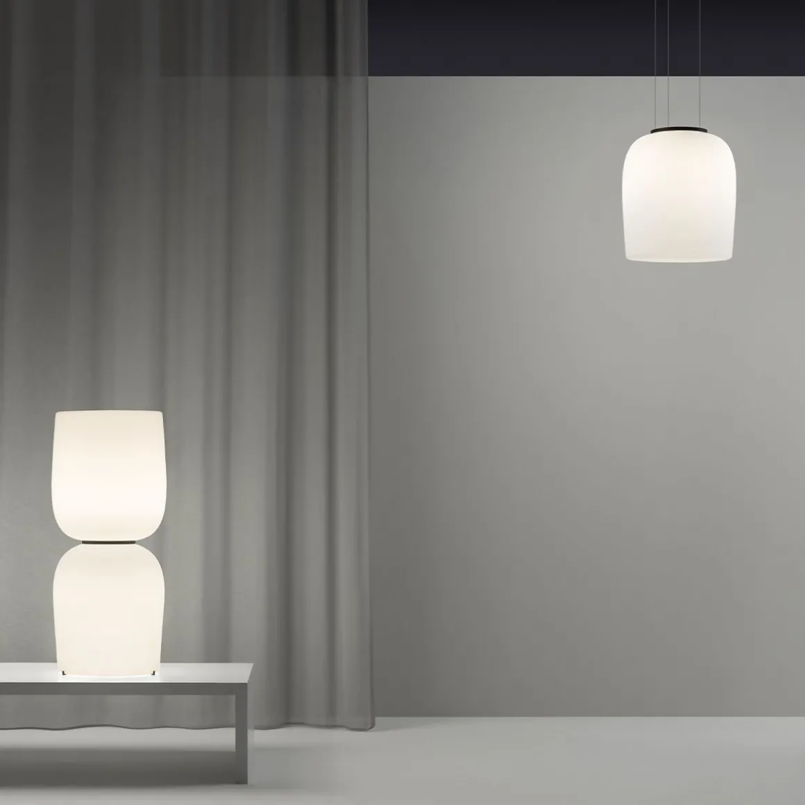 Comme son nom l’indique, la suspension Ghost présente une silhouette éthérée. Retenue par de fins câbles presque invisibles, cette lampe à la fois élégante et imposante semble flotter dans l’air. Suspendue à mi-hauteur, et quel que soit l’espace qu’elle occupe, cette suspension sculpturale devient un point de mire à l’effet théâtral. Faite d’un verre triplex opale soufflé bouche à la surface lisse, elle diffuse une lumière chaude et accueillante.