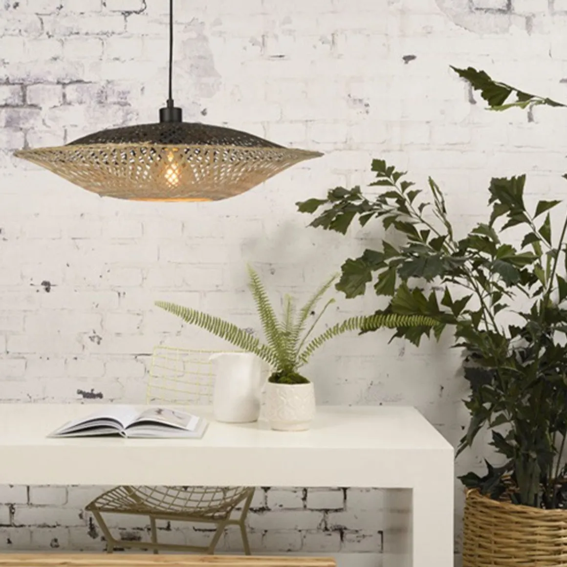 Cette suspension fait partie de la collection Kalimantan, fait en bambou tressée en deux coloris noir et naturel. Elle donnerai une touche naturelle est aérienne grâce à sa technique de tressage. C’est un luminaire biodégradable, et fait à la main.