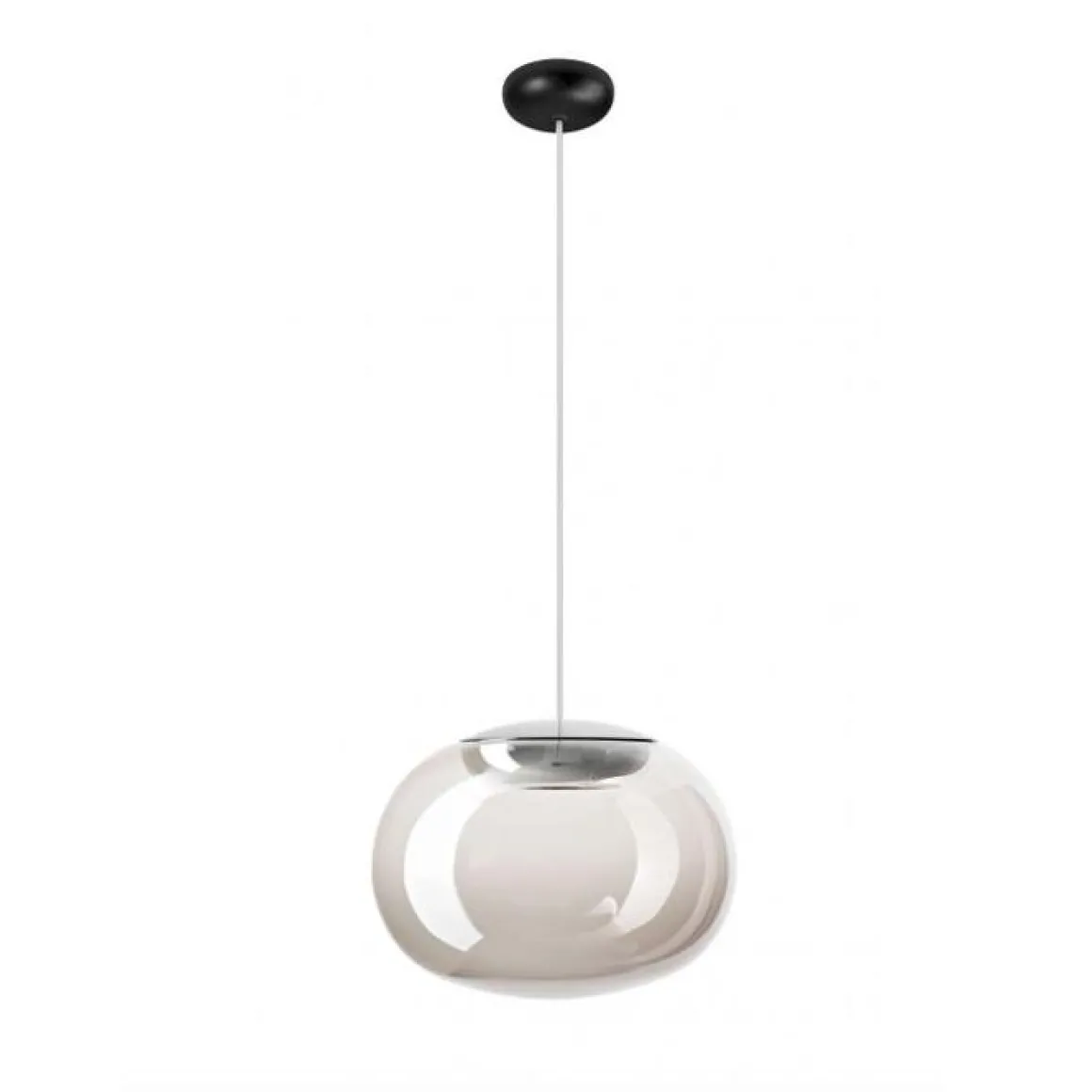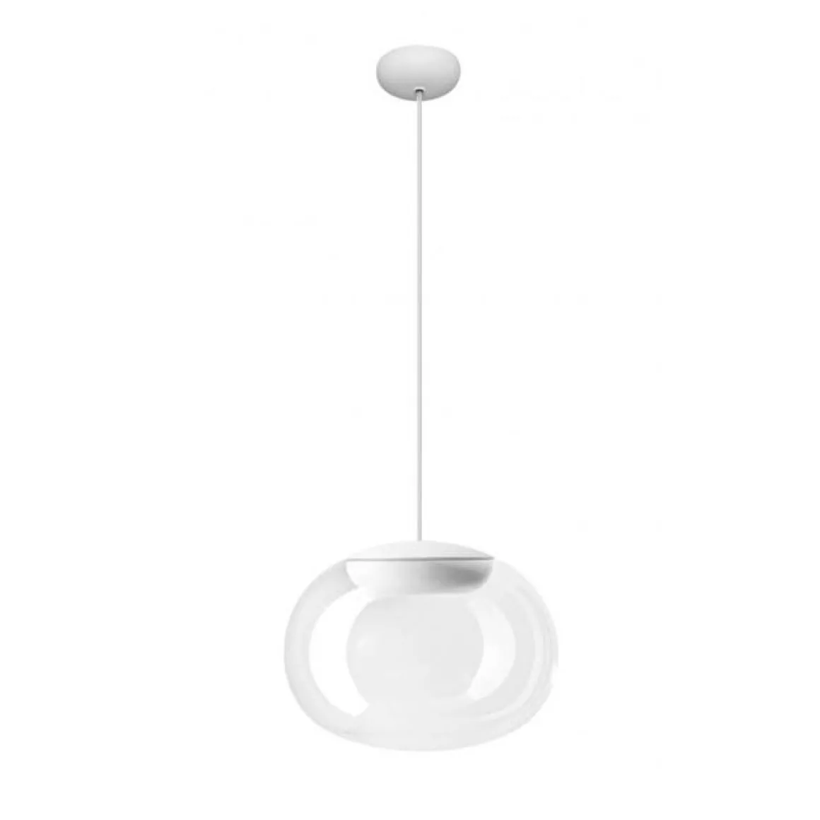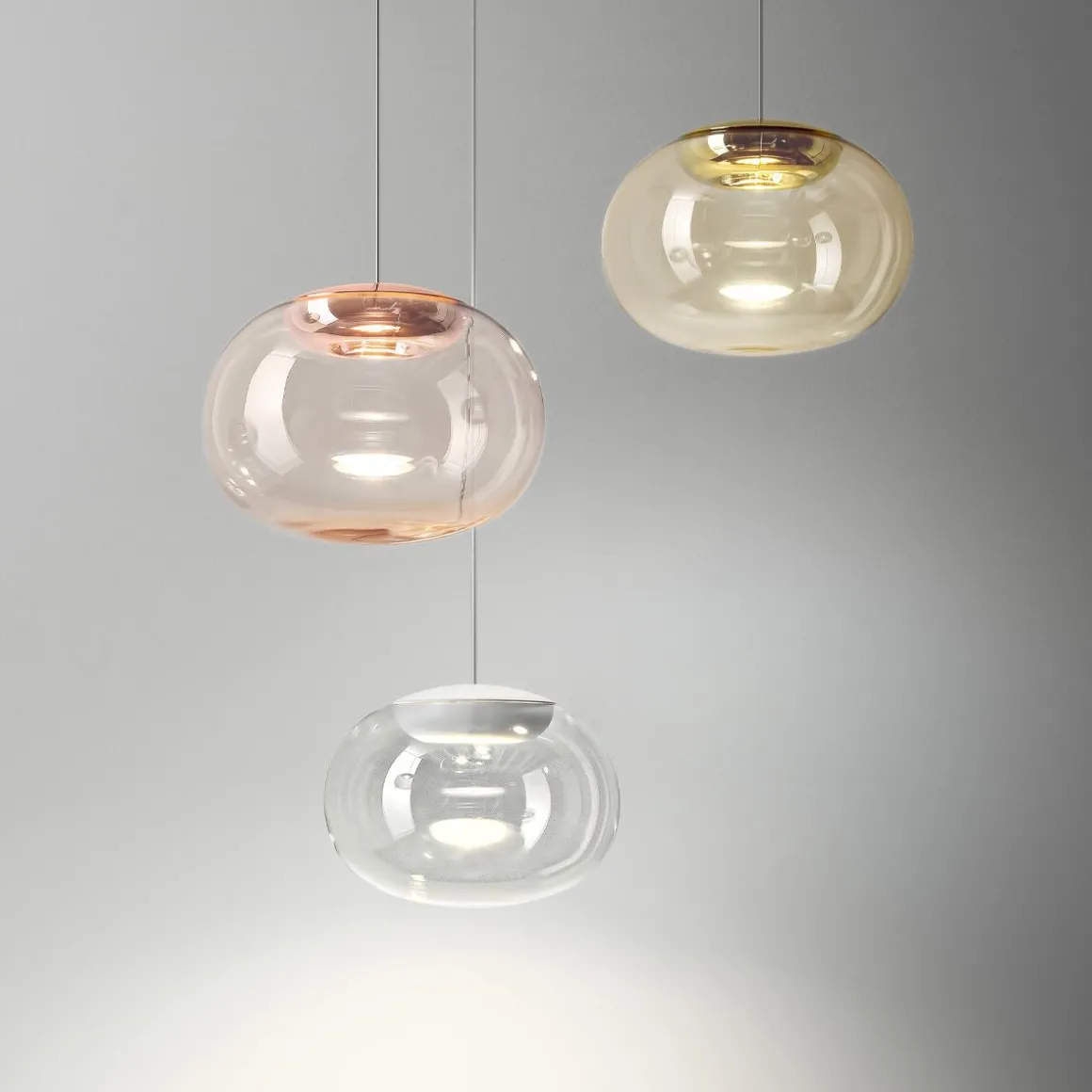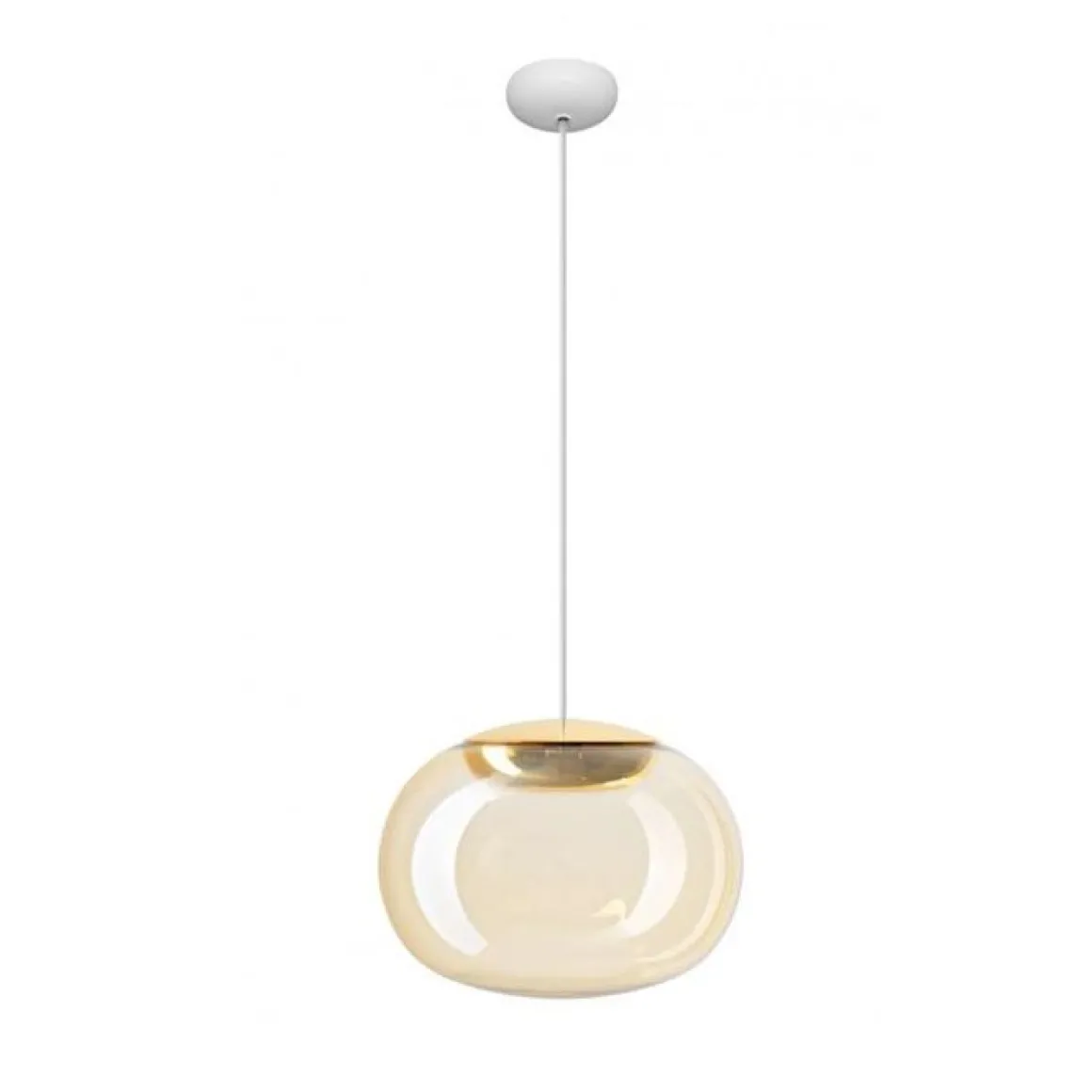 Matériaux : Diffuseur en pâte de verre soufflé, anneau interne en aluminium, pavillon en métal.