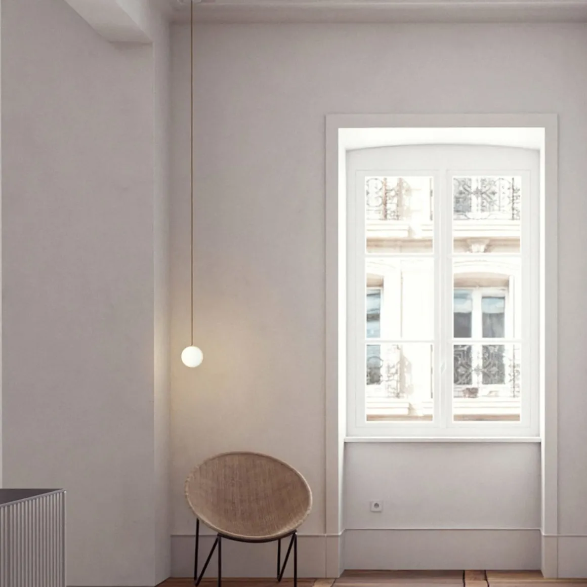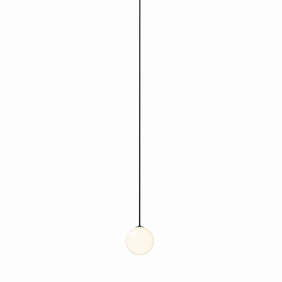 Matériaux : aluminium thermolaqué ou laiton, globe de verre opalin soufflé à la main