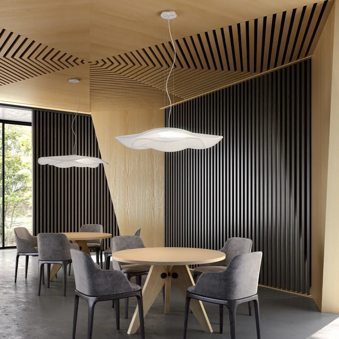 La lampe Mediterrània est une ode à la lumière, à la brise et à l’odeur méditerranéenne. Une douce vague de ruban qui rend hommage à notre lumière méditerranéenne, si hétérogène tout au long de la journée, cette lumière qui combine toujours des éclairs lumineux avec des faisceaux très chauds, surtout au lever et au coucher du soleil.