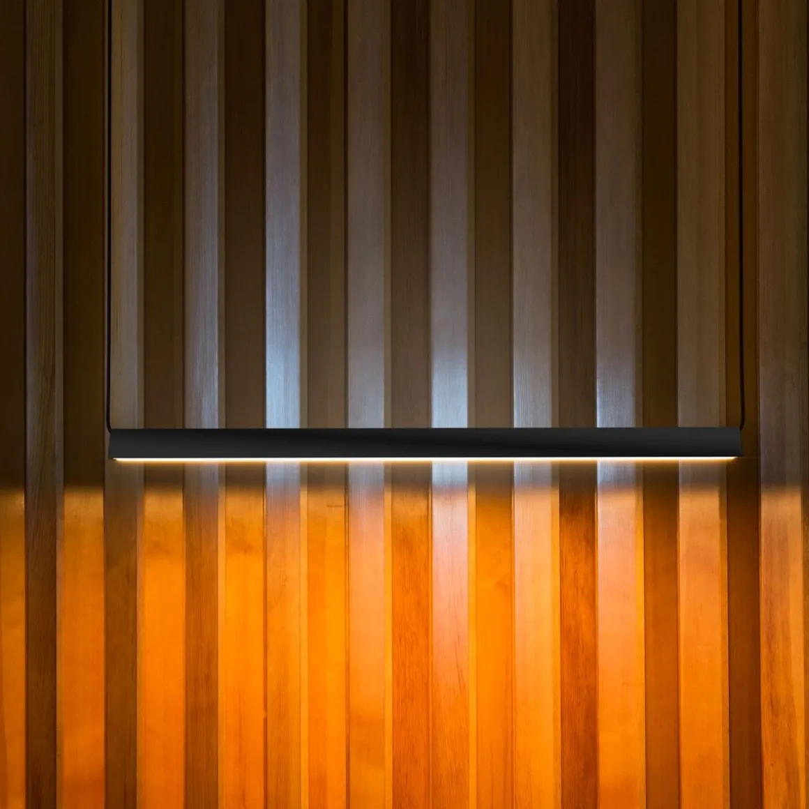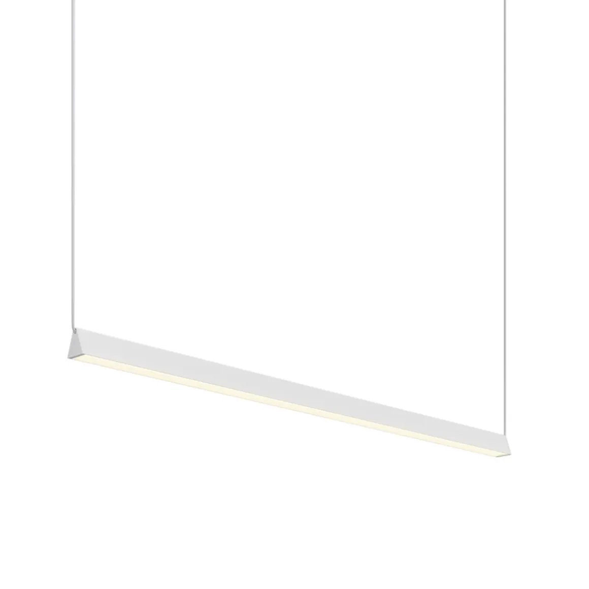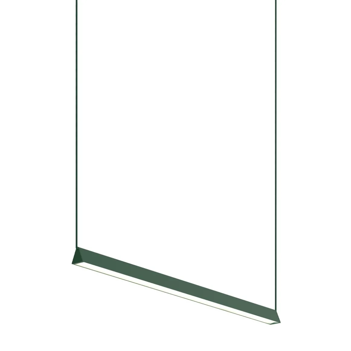 La collection Mile propose une variation sur la suspension linéaire, réduite ici à son expression la plus simple. Un pivot sépare les deux lignes asymétriques de la lampe, créant ainsi un équilibre surprenant. L’éclairage direct et indirect se superposent pour délimiter l’espace. L’utilisation de DEL linéaire et les fils pincés dans la structure accentuent l’impression de lévitation.