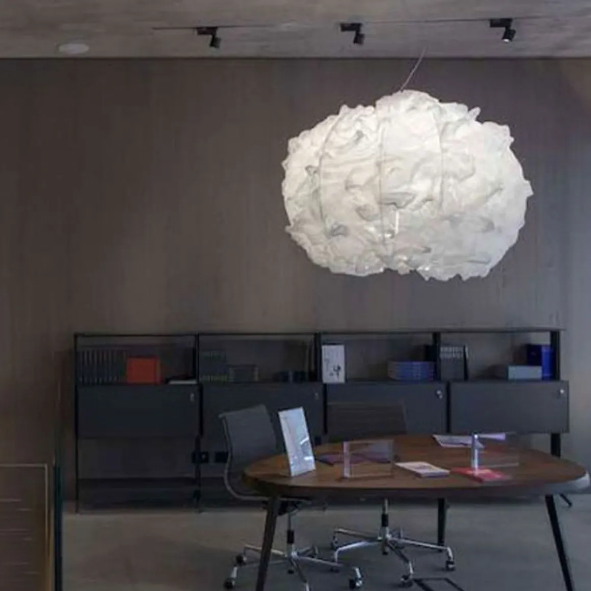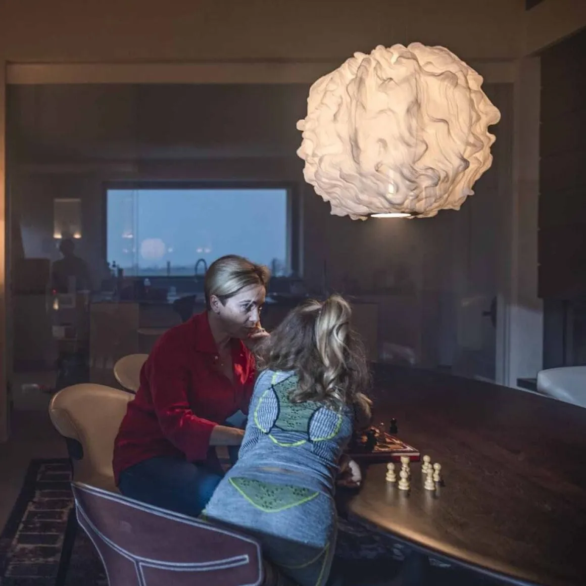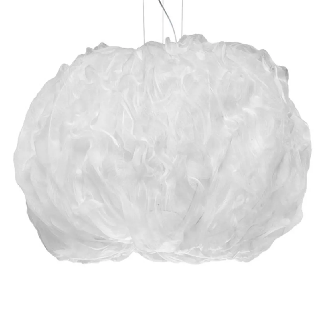Comme une multitude d’êtres ou de choses regroupées d’une manière apparemment guidée, mais en réalité aléatoire, Nuée génère un contraste entre spontanéité et coordination dans une lampe dont la physionomie ne peut être appréhendée, mais simplement contemplée. Nuée est une lampe de présence théâtrale réalisée en superposant un tissu technique tridimensionnel, que la lumière traverse de manière irrégulière et évocatrice. Le fil continu du tissage permet des déformations qui deviennent poétiques: des zones sombres apparaissent sur une base blanche, comme un nuage qui assombrit sa couleur dans les zones plus compactes.