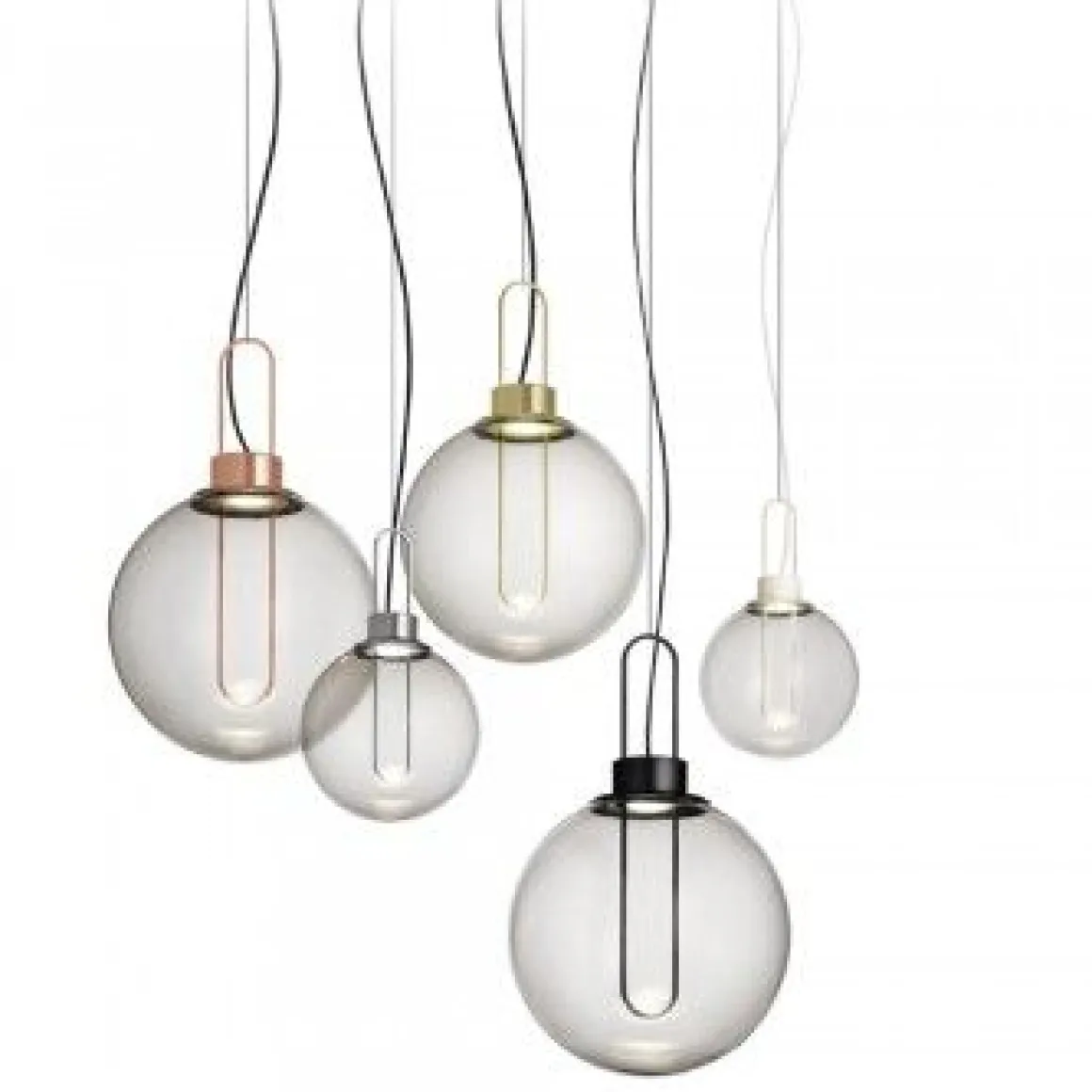 Orb est une suspension dont le globe diffuseur est en PMMA fumé et sa structure en métal verni matt blanc ou noir ou en finitions galvanisées : chrome, cuivre, laiton. La patère est de la même couleur de la structure. Avec son style sobre et design, la suspension Orb se marie parfaitement avec différents types d’intérieur et apporte sa touche contemporaine à votre décoration.