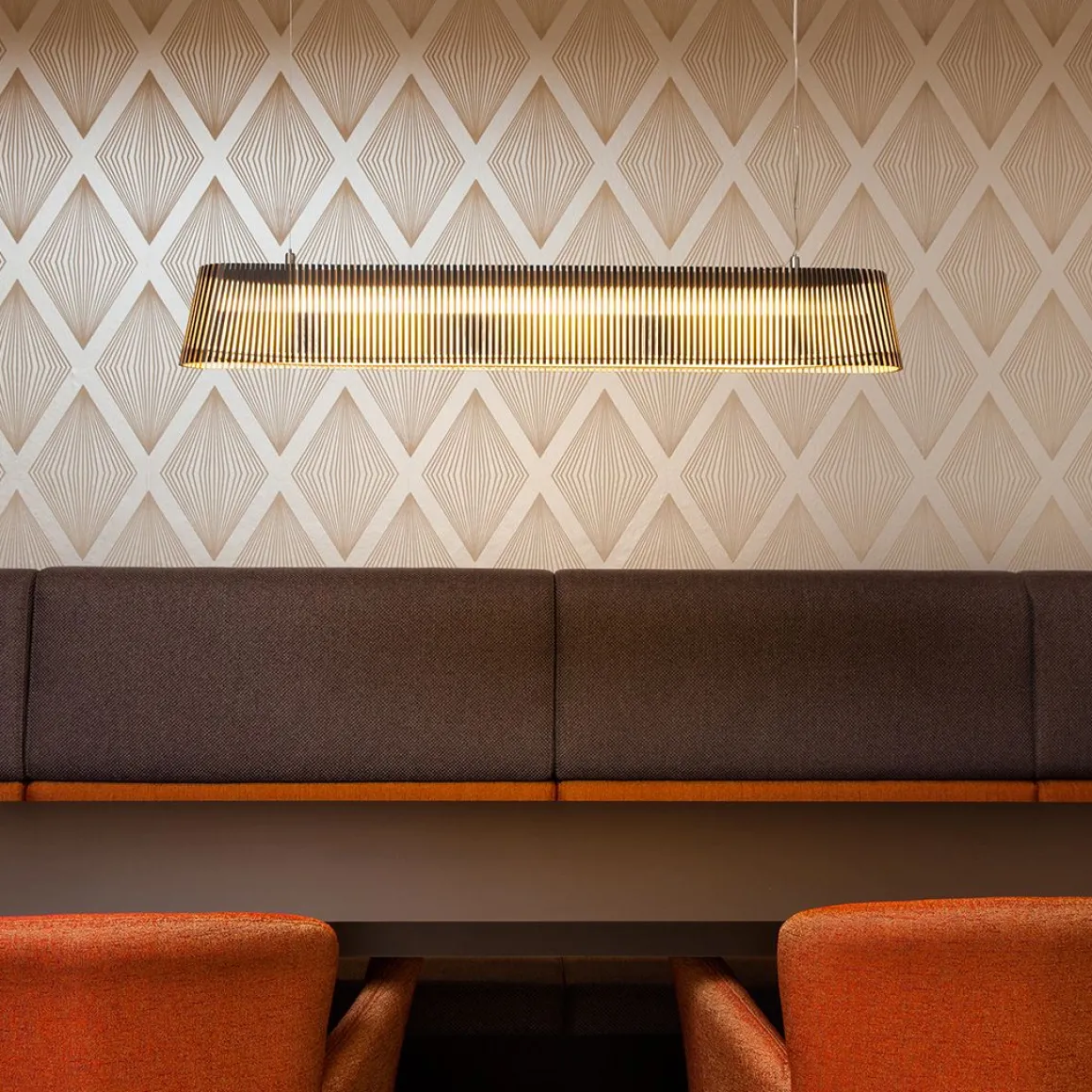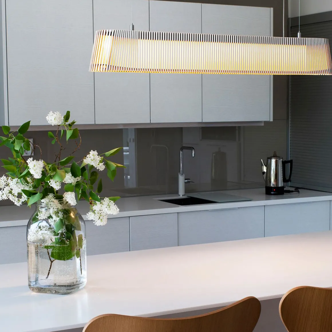La suspension Owalo est entièrement fabriquée à la main par des artisans hautement qualifiés et certifiés de Finlande. Les lattes des abat-jours sont reliées par des anneaux réalisés en « aircraft plywood », matériau utilisé en aéronautique car hautement résistant à la chaleur. Secto Design a une démarche citoyenne sur la réduction de son empreinte écologique en s’approvisionnant localement en bois et en recyclant ses déchets comme bois de chauffage, en jouets pour les crèches ou pour les écoles de menuiserie. Sa forme allongée lui donne un style moderne et raffiné à la fois. La suspension Owalo dégage une lumière douce pour une ambiance conviviale. Elle est aussi un véritable objet de décoration grâce à son look design qui peut s’adapter à différents intérieurs.