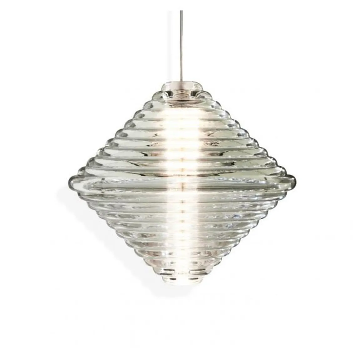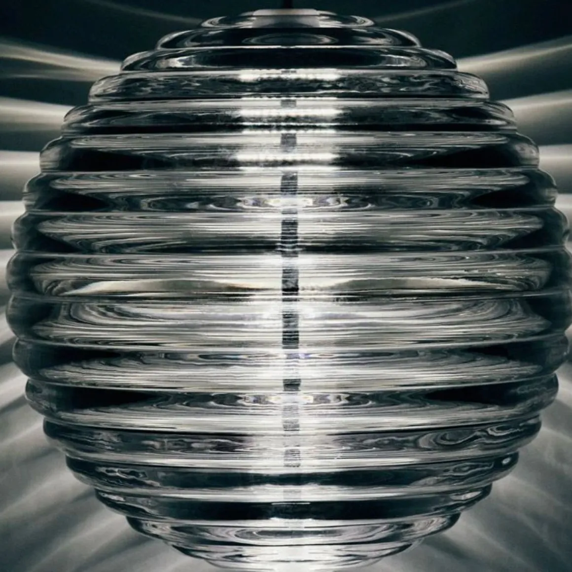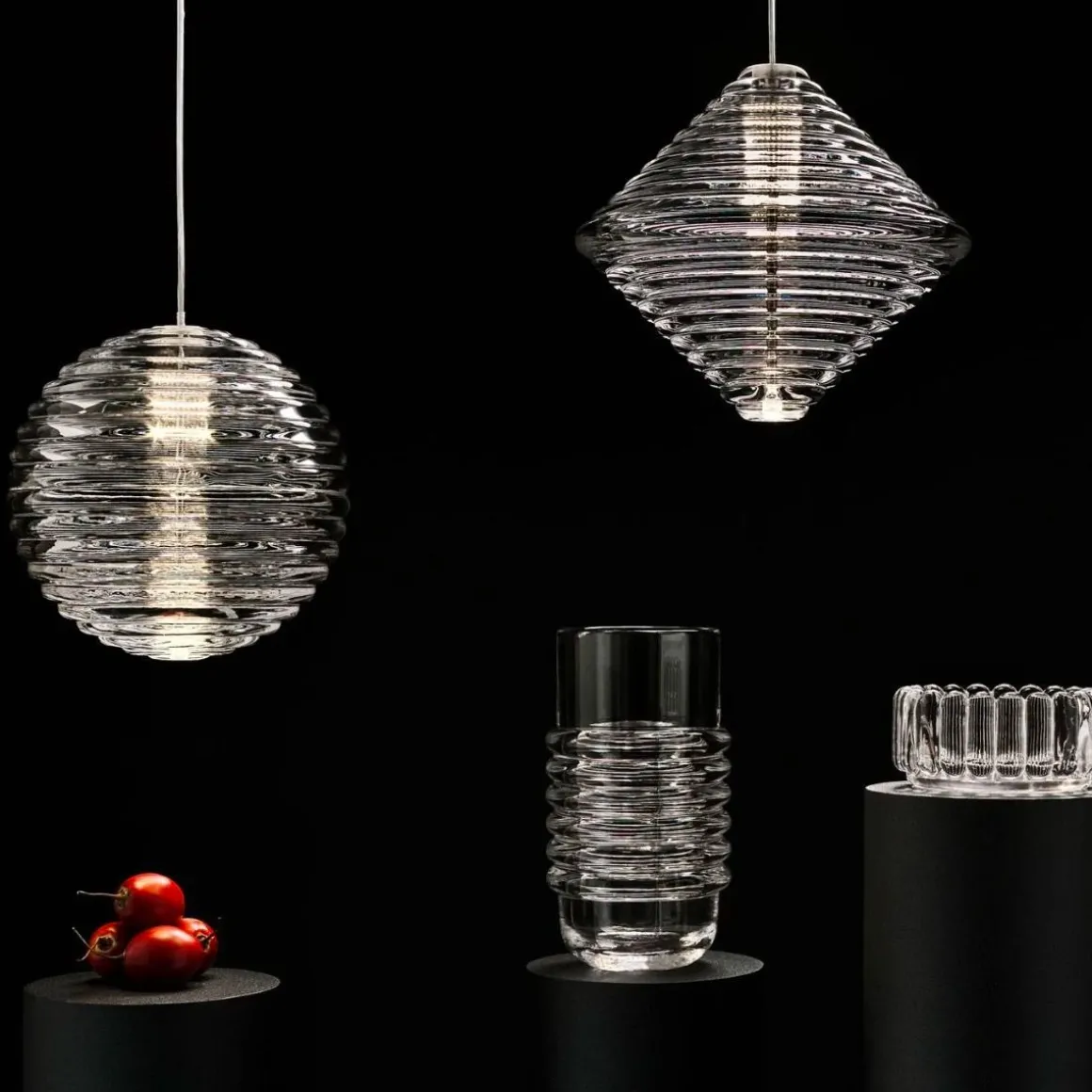 Press est une série de luminaires fabriqués à partir du verre le plus épais et le plus transparent, avec un détail de surface linéaire arrondi satisfaisant. Nommée à juste titre Sphere et Cône, la forme rappelle les bouées de navigation et les jouets d’enfants. Le verre nervuré crée une diffusion de la source lumineuse et projette des motifs linéaires et rayés. Audacieuse dans sa silhouette et simple dans sa fonction, Press est fabriquée en laissant tomber des globs massifs de verre fondu à 1 200 degrés centigrades, pressés dans des moules en fer sous des tonnes de pression pour créer des lumières immensément durables.