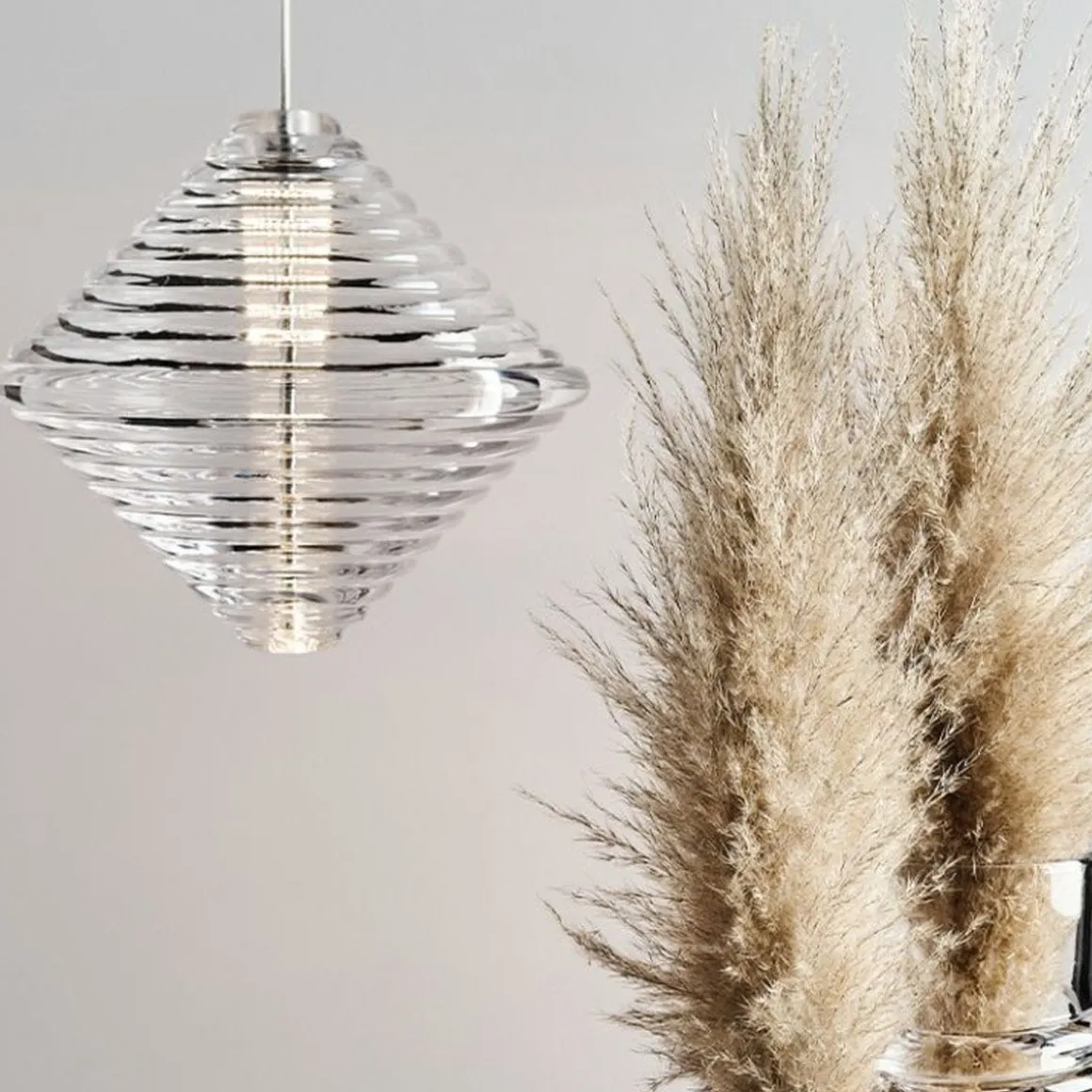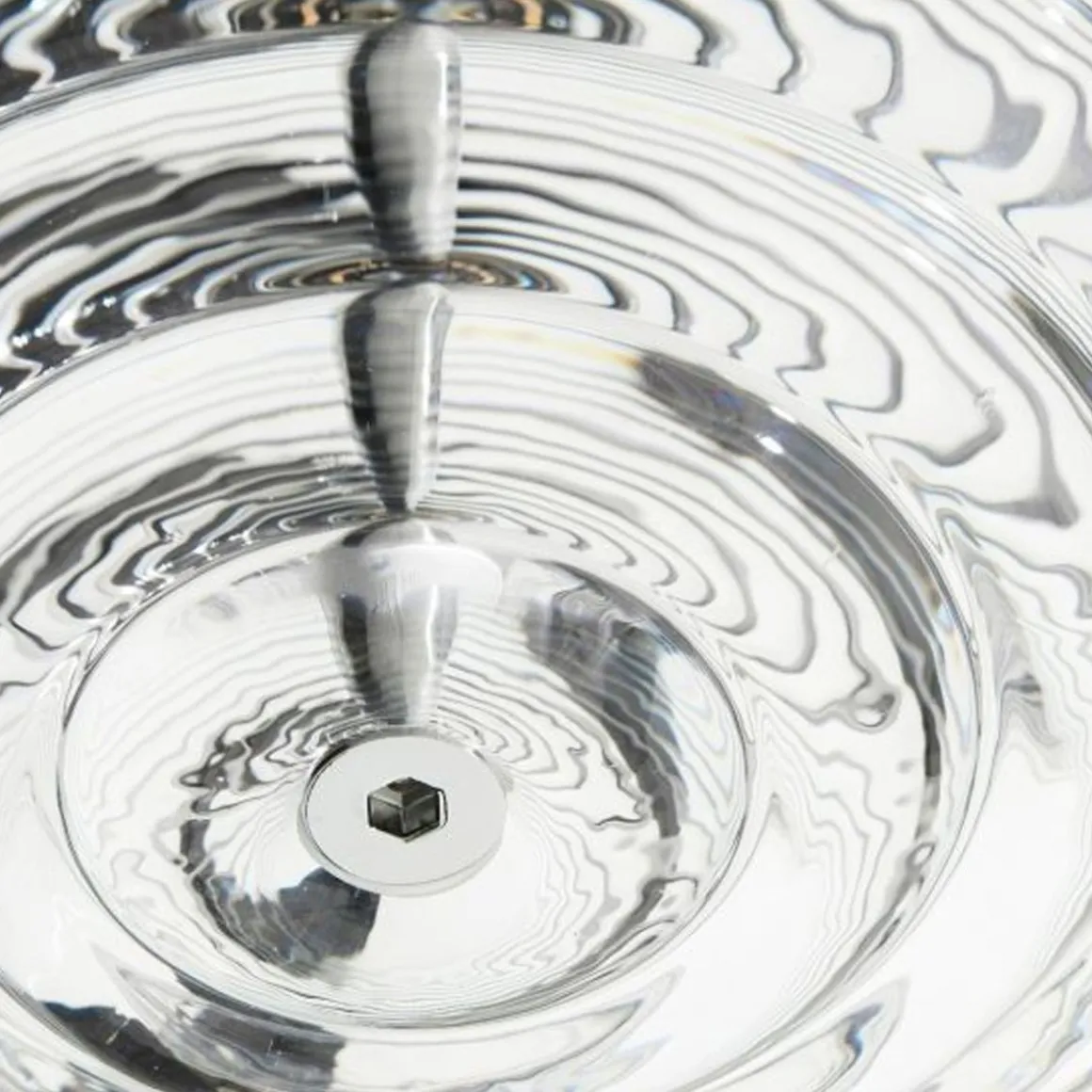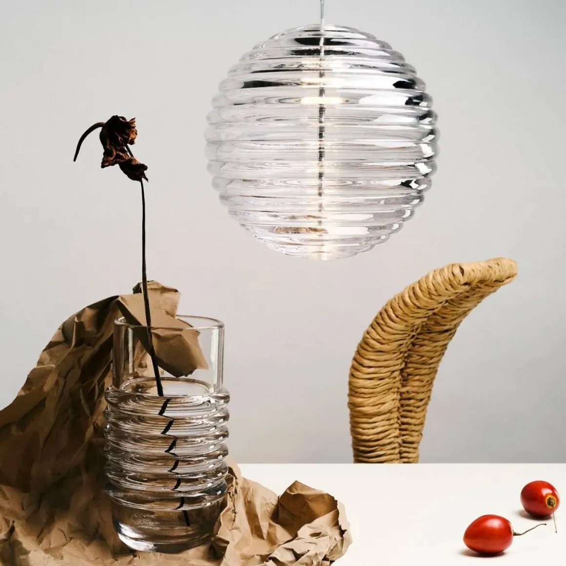 Press est une série de luminaires fabriqués à partir du verre le plus épais et le plus transparent, avec un détail de surface linéaire arrondi satisfaisant. Nommée à juste titre Sphere et Cône, la forme rappelle les bouées de navigation et les jouets d’enfants. Le verre nervuré crée une diffusion de la source lumineuse et projette des motifs linéaires et rayés. Audacieuse dans sa silhouette et simple dans sa fonction, Press est fabriquée en laissant tomber des globs massifs de verre fondu à 1 200 degrés centigrades, pressés dans des moules en fer sous des tonnes de pression pour créer des lumières immensément durables.