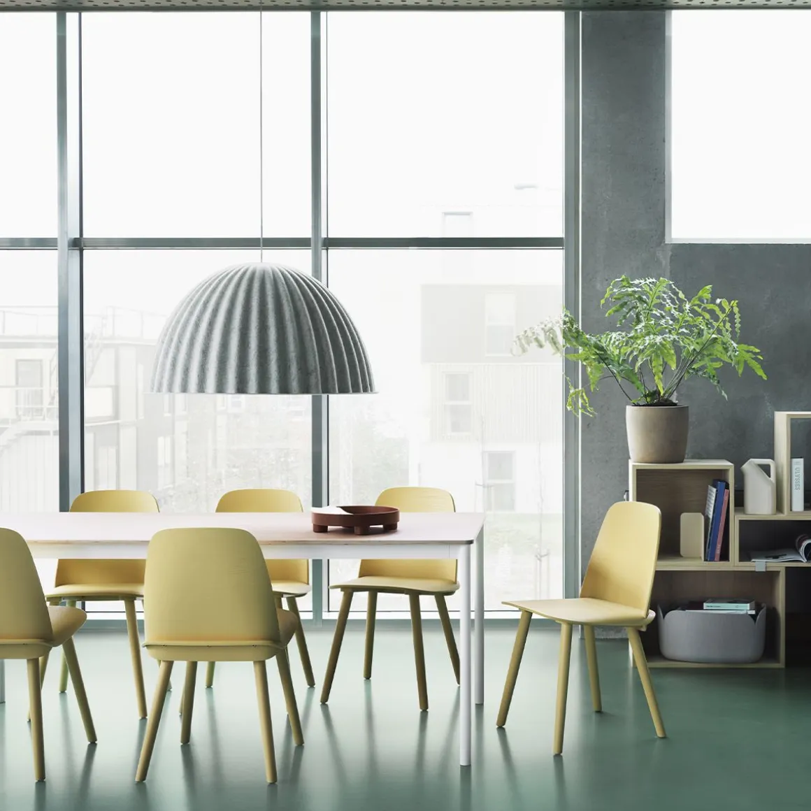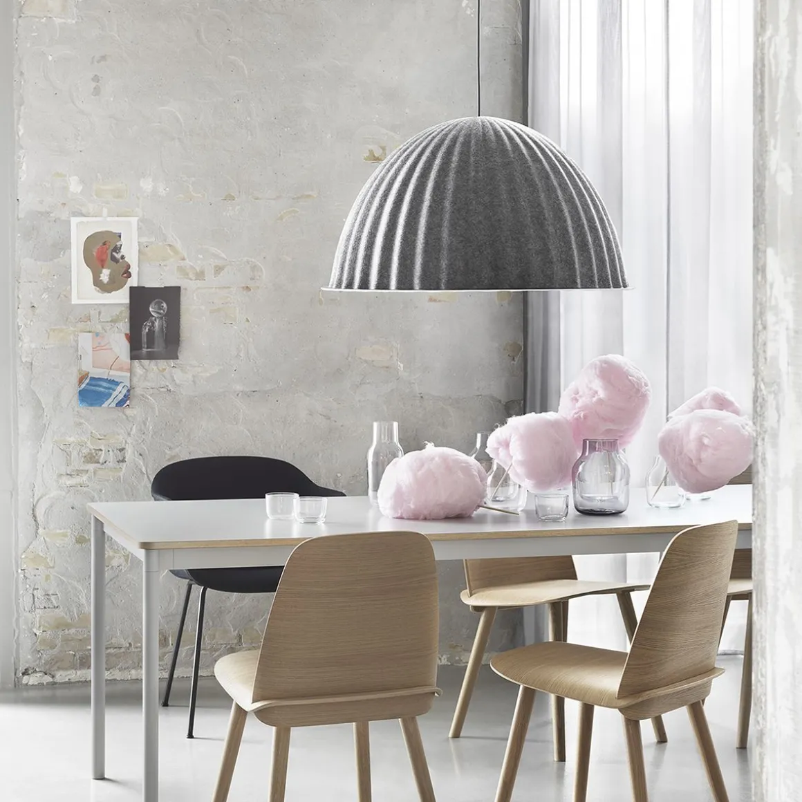 Conçue dans un matériau qui utilise jusqu’à 80% de fibres plastiques recyclées, la suspension Under The Bell apporte non seulement une expression tactile et moderne à n’importe quel espace, mais améliore également l’acoustique d’une pièce grâce à son abat-jour doux, associé à son graphisme linéaire et sa palette de couleurs subtiles.