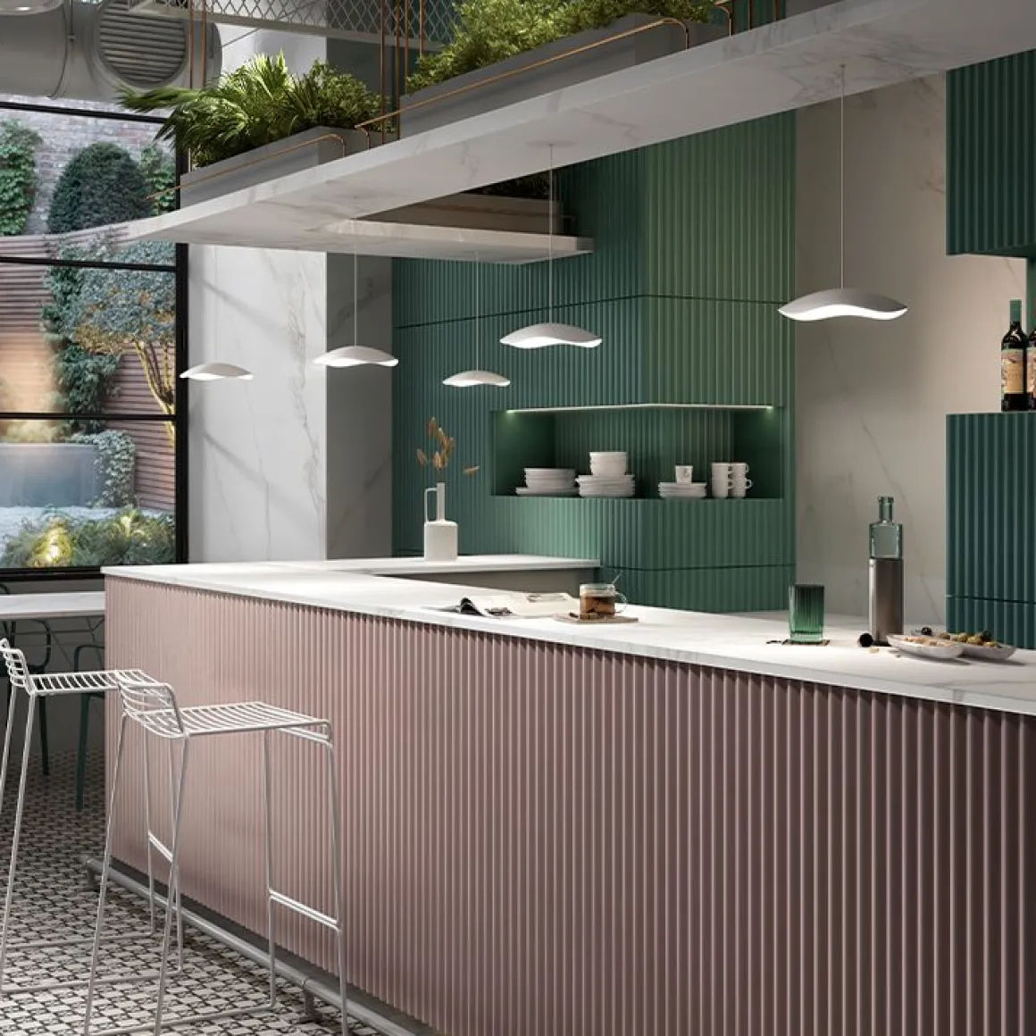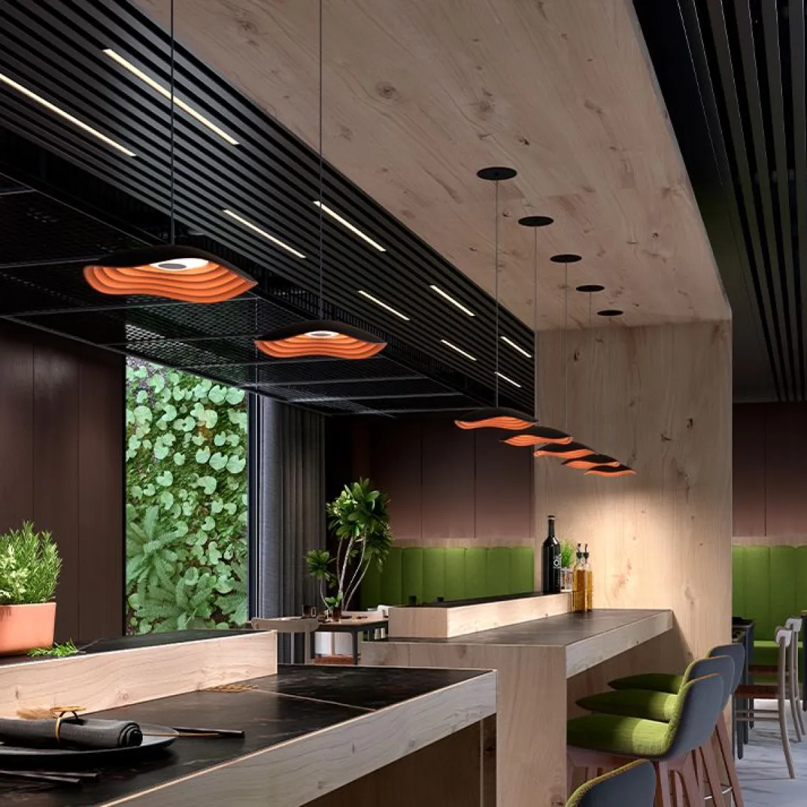 Le concept de cette lampe est basé sur une tête lisse qui dessine une forme ondulée sur son périmètre, le contraste clair avec la partie intérieure de la lampe, qui nous rappelle les oscillations douces et petites que les courants marins forment sur la côte méditerranéenne.