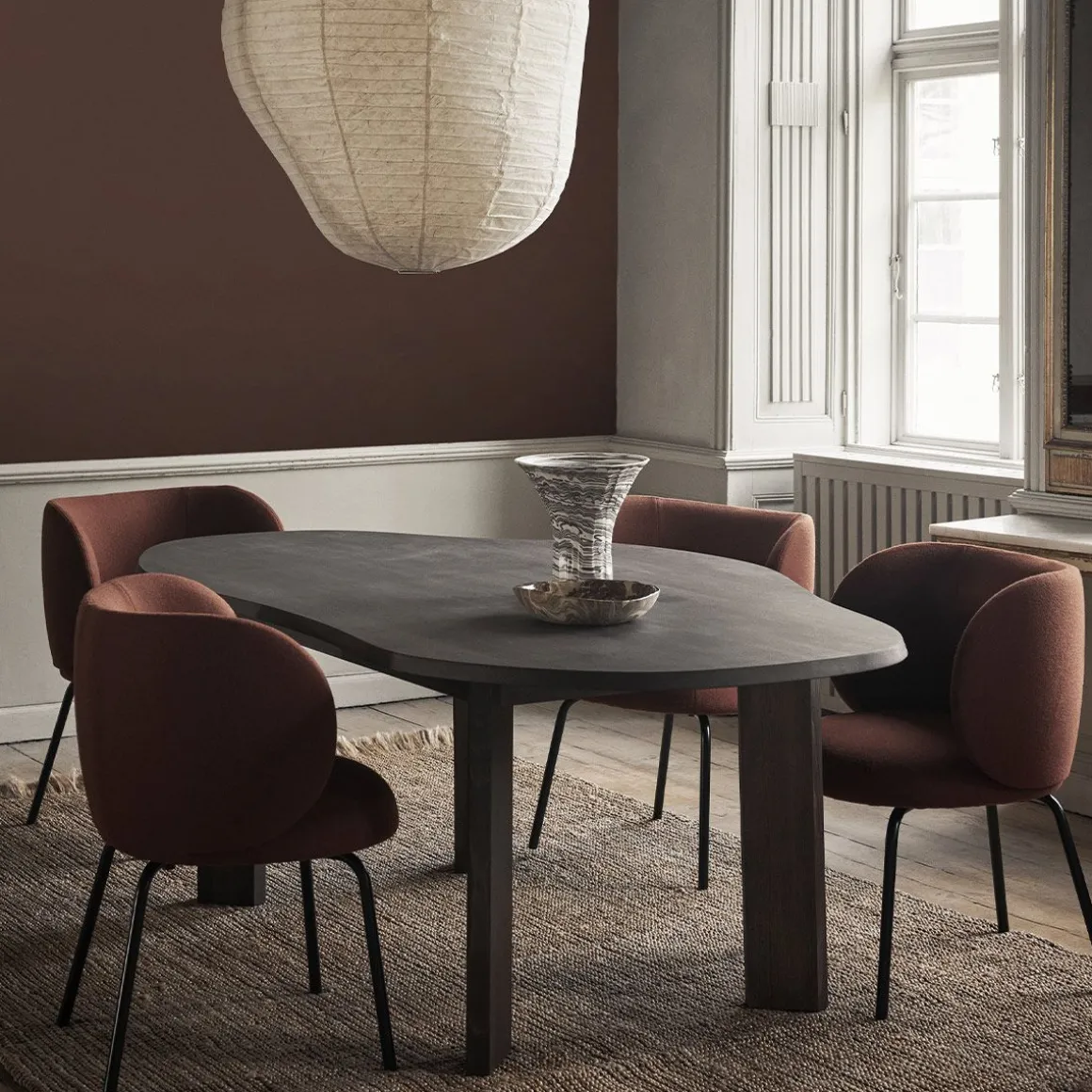 La table à manger Tarn est méticuleusement réalisée en bois de hêtre massif certifié FSC™. Elle présente une forme fluide et organique, magnifiquement contrastée par un bord biseauté et quatre pieds larges et linéaires, créant ainsi une pièce visuellement frappante. Parfaite pour votre salle à manger ou votre cuisine, elle crée facilement une ambiance chaleureuse et confortable pour vos repas.