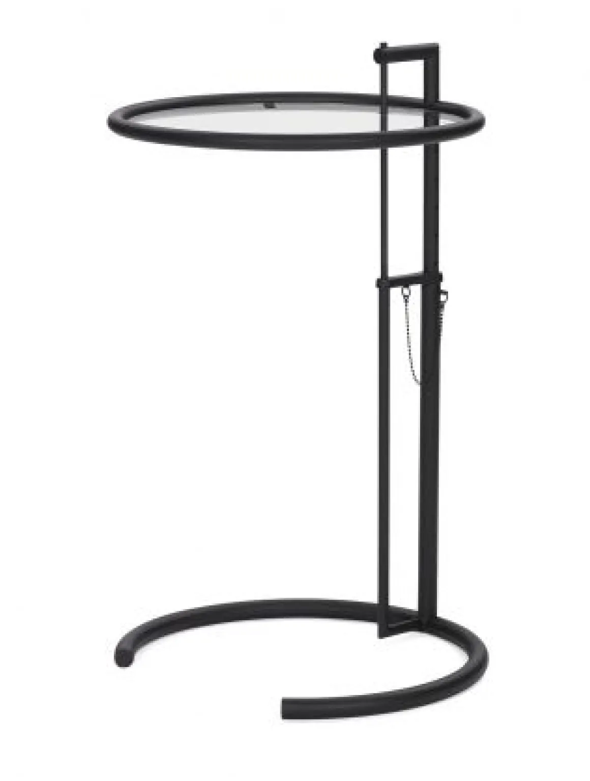 La Table ajustable E 1027 est un des classiques les plus reconnaissables du 20ème siècle. La table réglable, sa forme compacte et sa symétrie, en fait le complément idéal à n’importe quelle pièce. A l’origine, cette table faisait partie du mobilier de la résidence secondaire en Bord de Mer E 1027 d’Eileen Gray, qu’elle a construit pour elle et son collaborateur, Jean Badovici.
