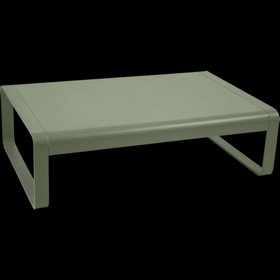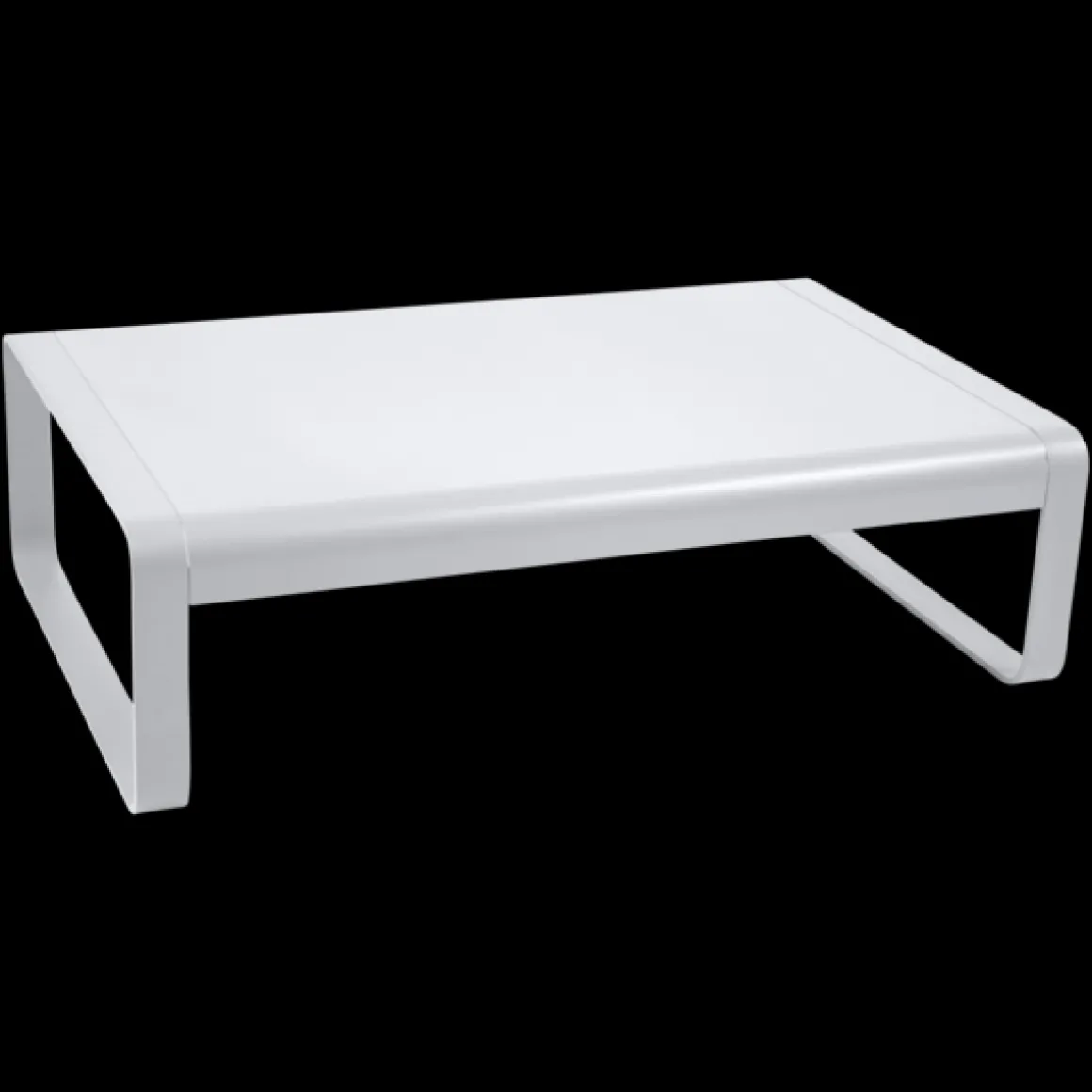 Table Basse Bellevie de Fermob. La table basse Bellevie d’inspiration contemporaine et graphique offre un plateau aux dimensions généreuses pour profiter de bons moments de convivialité. Son plateau et son piètement sont conçus en aluminium et prévus pour un usage extèrieur, ils ont reçus un traitement très haute protection contre les UV et les intempéries. Cette table basse vous suit tout au long de l’année dans n’importe quelle pièce de la maison, du salon, de la salle à
