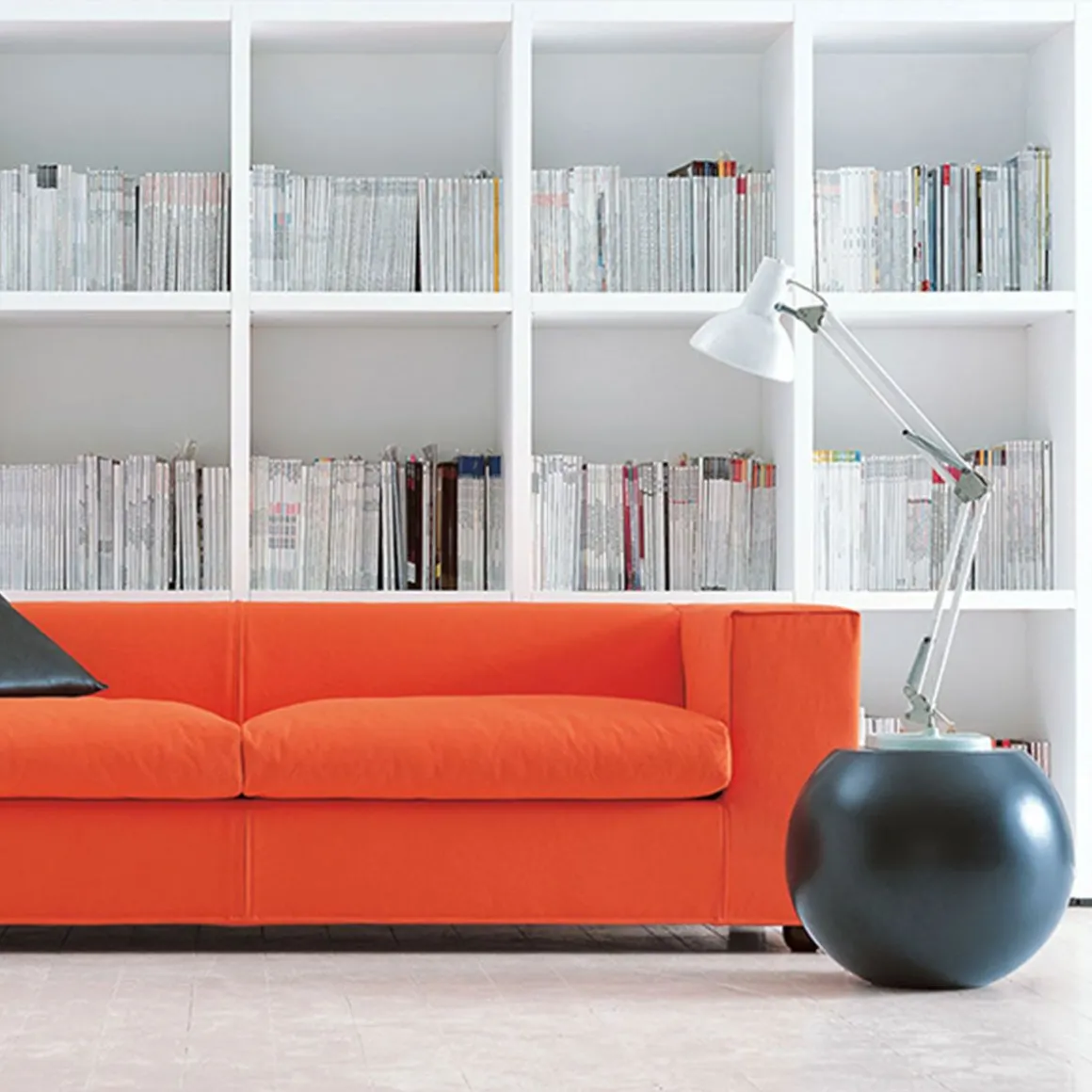 La table basse Bong est une création imaginée en 2004 par Giulio Cappellini. Petite table sphérique avec plateau rond, fabriquée en fibre de verre et résine, disponible peinte en ton mat dans une sélection de couleurs, ou avec une finition pierre de lave.
