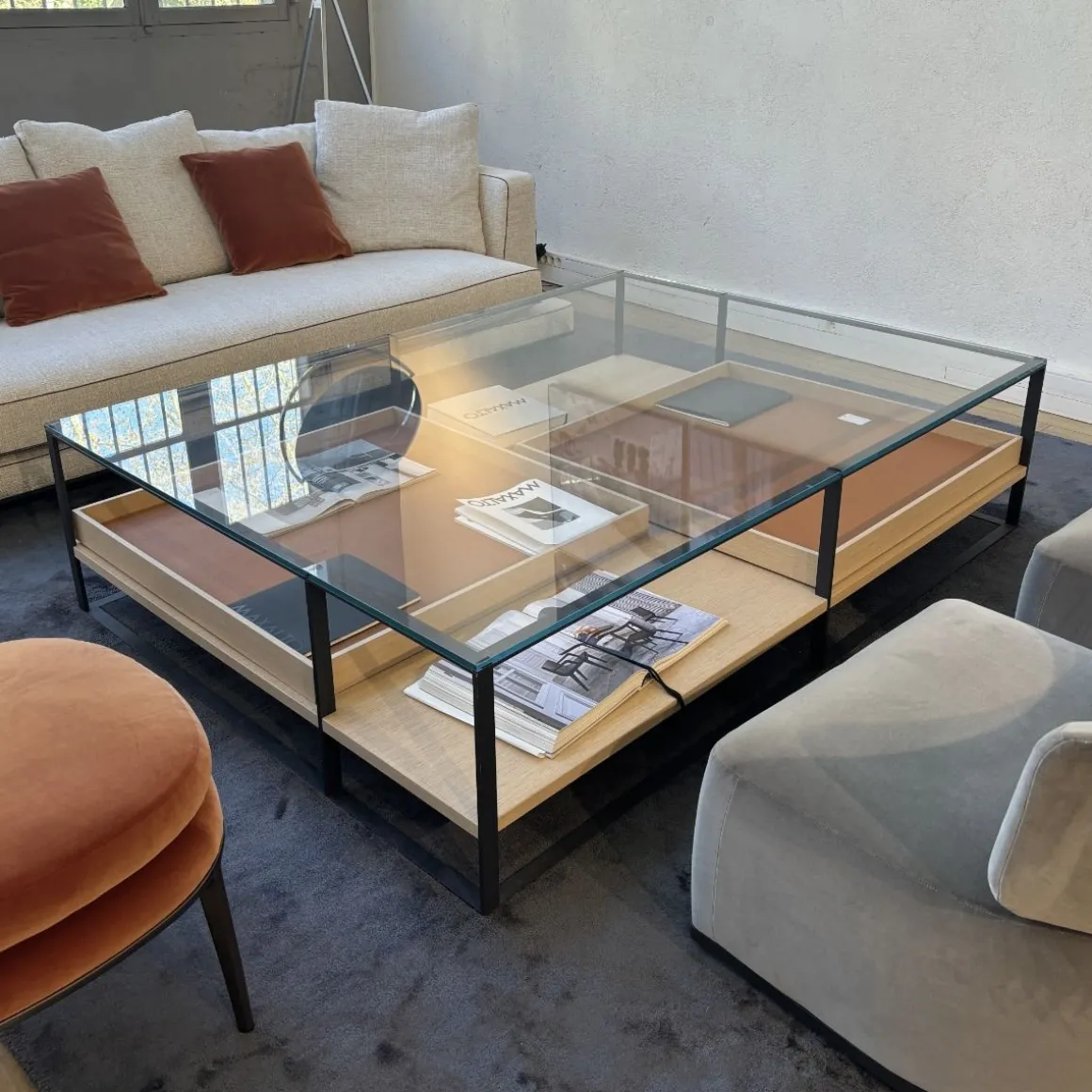 Conçues pour ranger et exposer des objets précieux avec élégance, les tables basses Lithos sont idéales pour la maison comme pour les commerces. Placées au centre de la pièce, elles permettent de visualiser, d’extraire et de repositionner facilement leur contenu.
