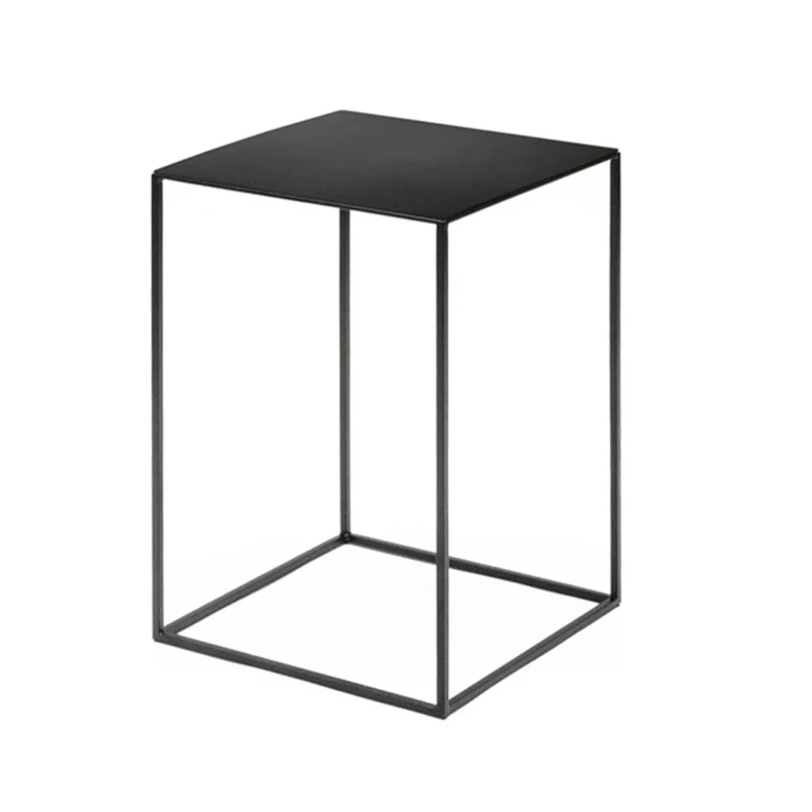 Matériaux : table basse profilée en acier carré, plateau en tôle d’acier épaisseur 2 mm, peinture époxy, ou bois massif