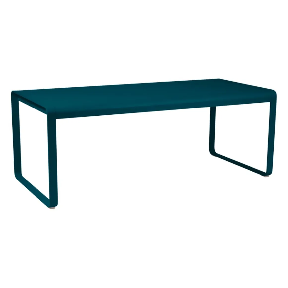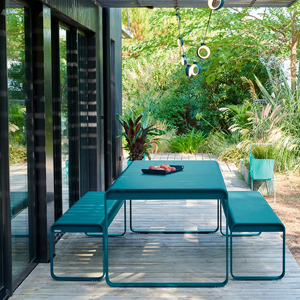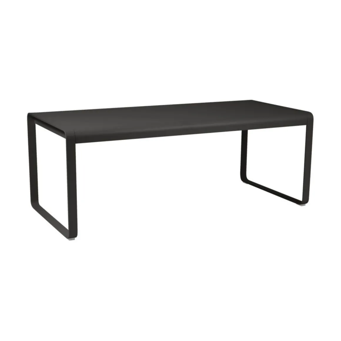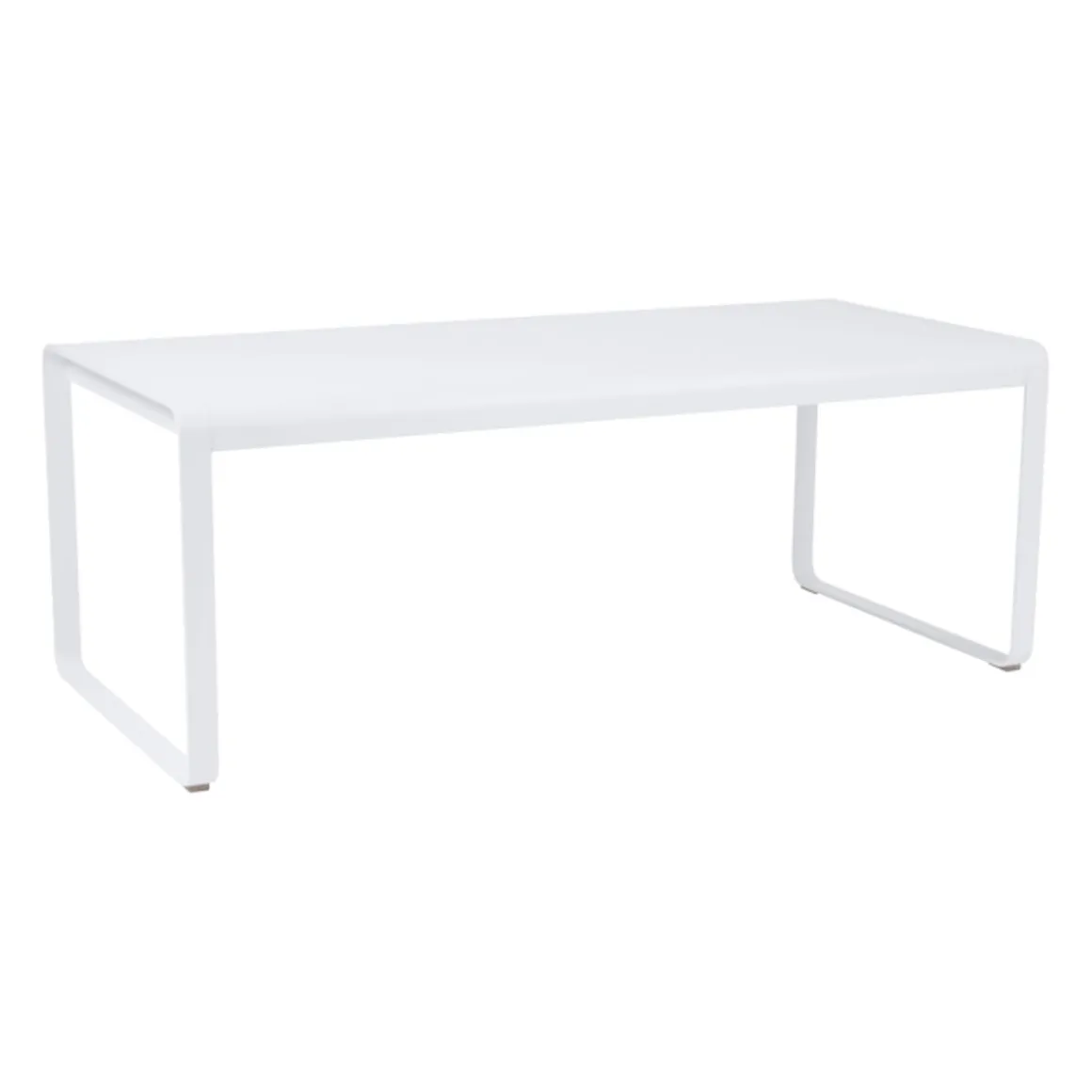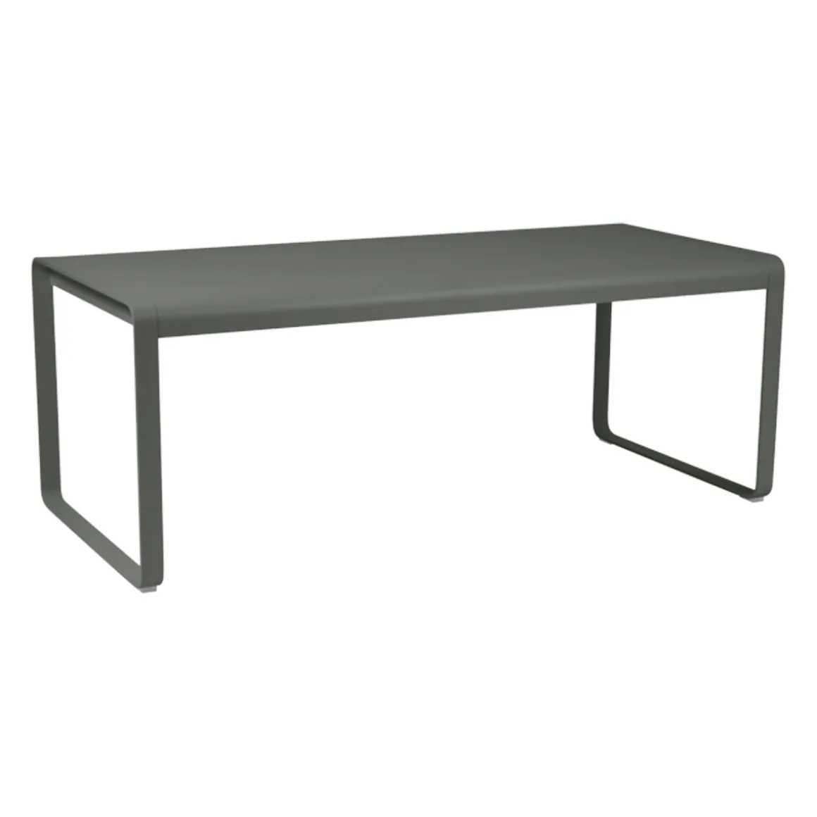 Table Bellevie de Fermob. La table Bellevie peut accueillir de 8 à 10 personnes. Cette grande table contemporaine est une invitation au partage, elle permet de réunir facilment la famille. Elle respire la convivialité que ce soit dans le salon ou le jardin. Cette table en aluminium peut se fixer au sol et permet aussi d’équiper des lieux publics. Elle est idéale pour répondre à toutes vos envies. diners entre amis, gouters, jeux en famille ..