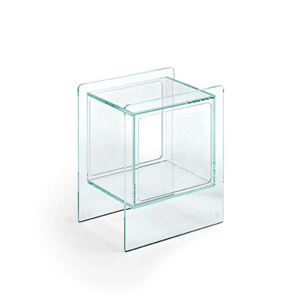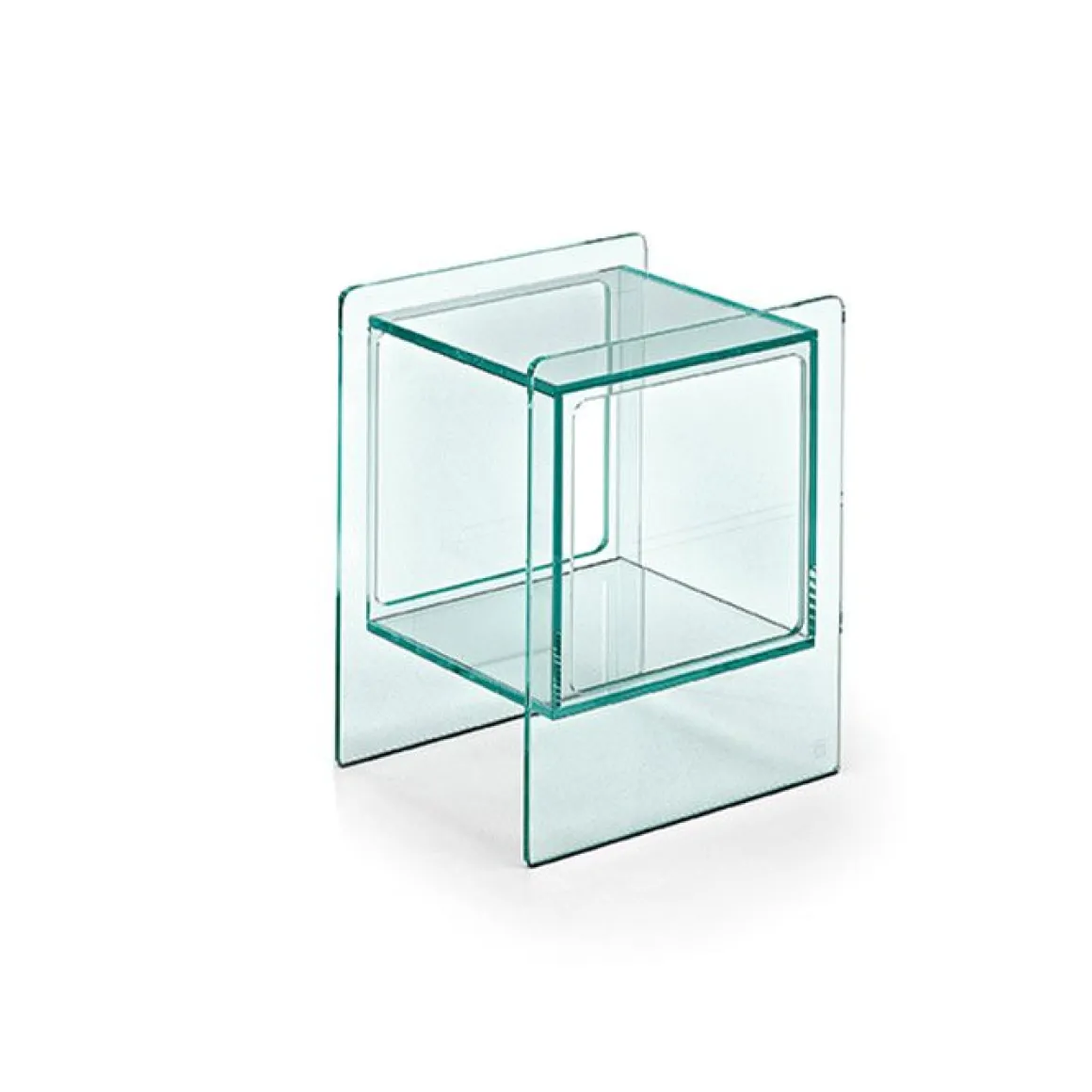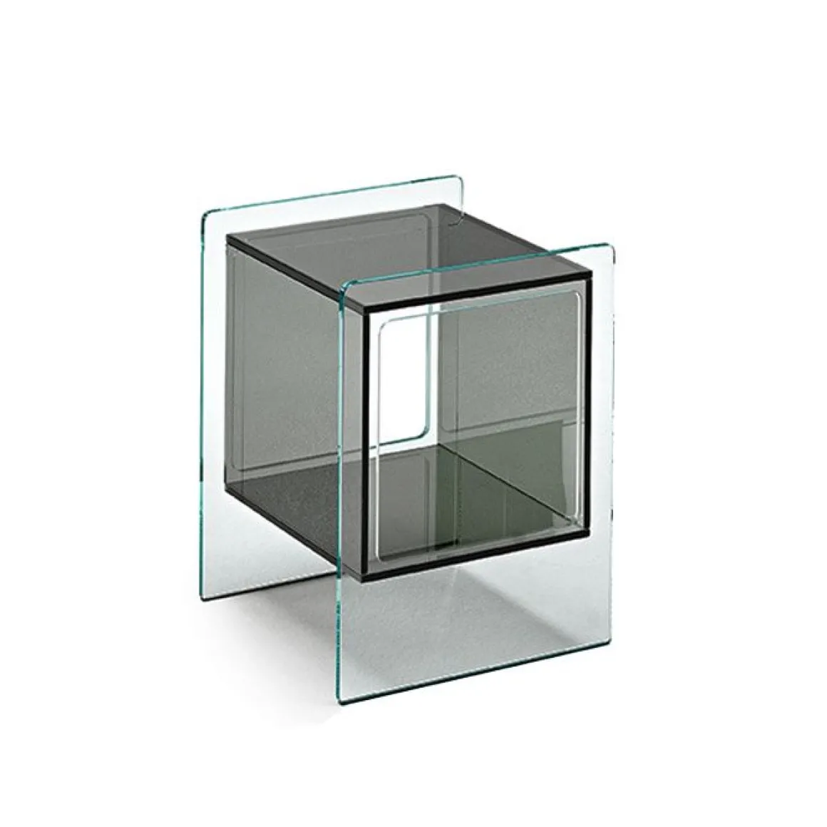 Chevet avec cube rangement en verre soudé de 10mm disponible dans plusieurs finitions.