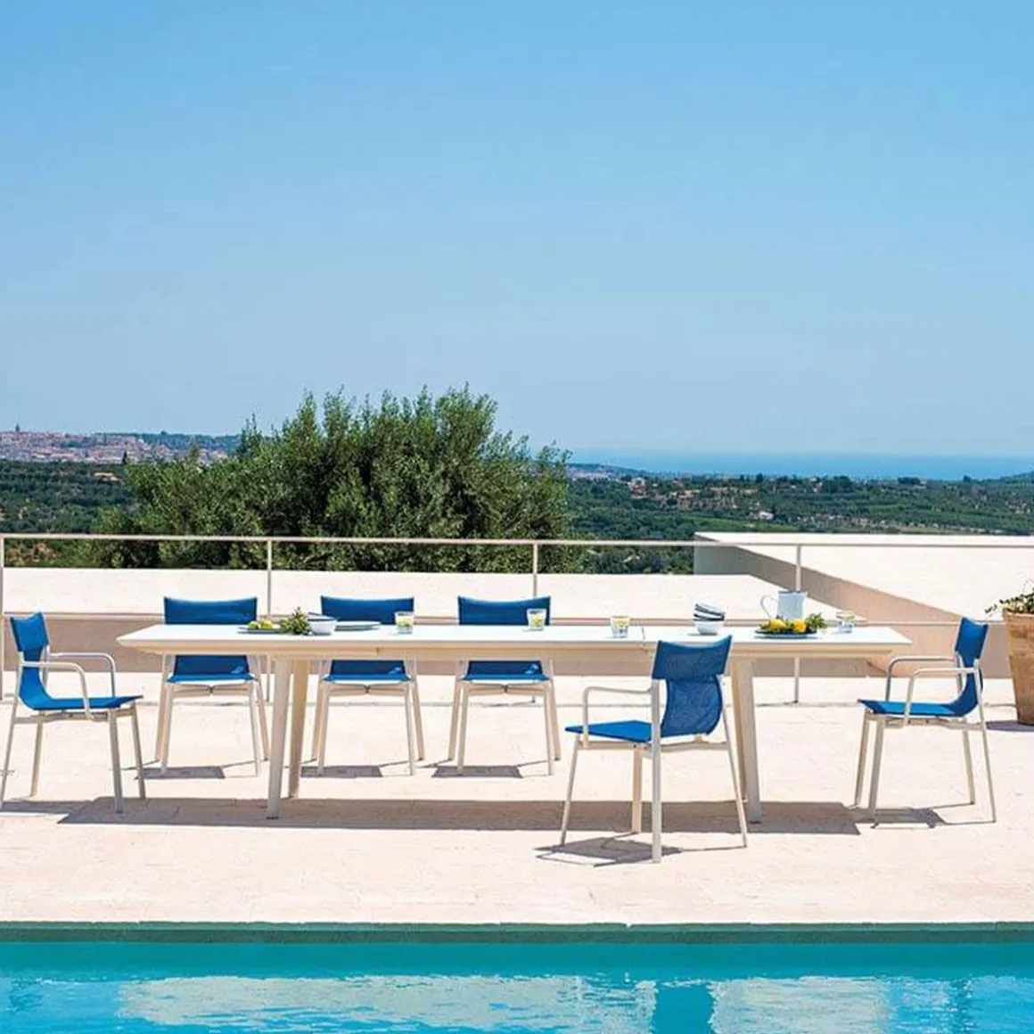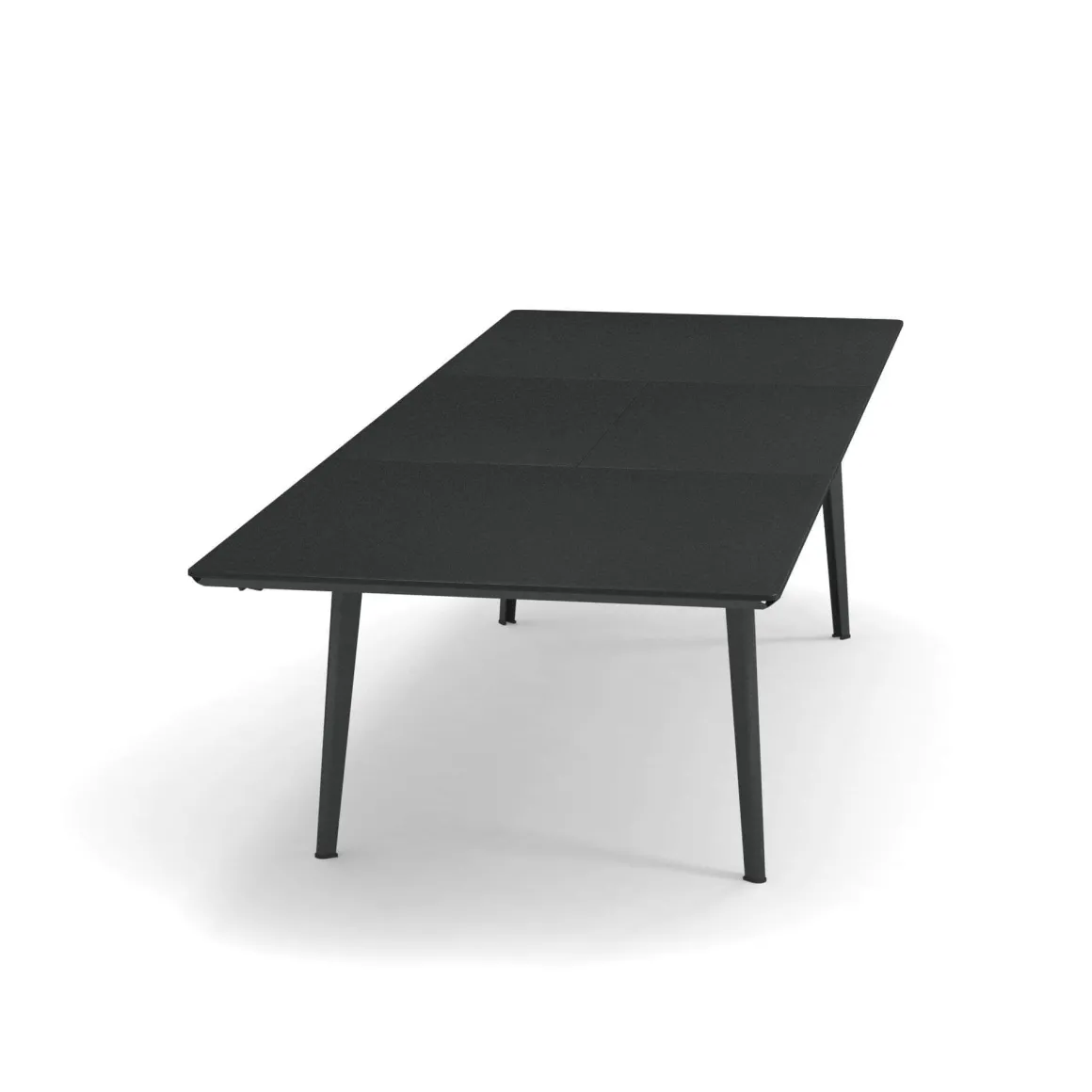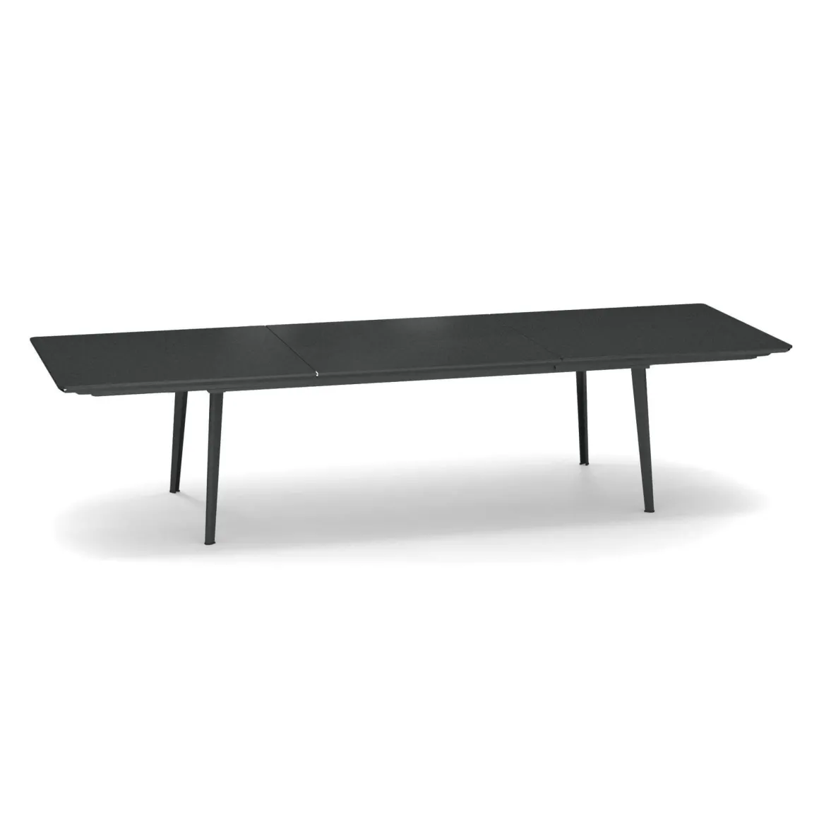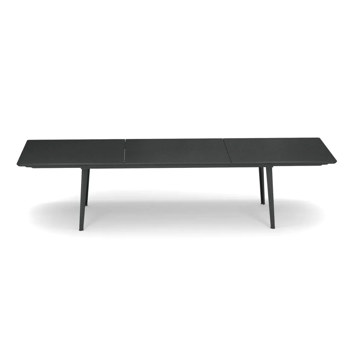 La collection Plus4 comprend deux tables extensibles, mesurant respectivement 160+110×90 cm et 220+110×90 cm, les nouvelles tables Balcony et Imperial Plus4. Le plateau est en acier plié à la presse, avec des finitions soignées assurant un meilleur effet esthétique. Les glissières permettant d’allonger le plateau sont conçues par EMU. Le mécanisme en « papillon » de la rallonge interne assure une ouverture extrêmement aisée. Par rapport à une table extensible traditionnelle, la rallonge de 110 cm permet d’ajouter 4 couverts au lieu de 2, ce qui augmente les possibilités d’utilisation de ce produit. En outre, l’extension de la table est conçue de manière à ce que toutes les personnes puissent s’asseoir sans être gênées par les pieds. Le pied de toutes les tables Plus 4 sont réalisés en tôle profilée et se termine en forme de « U » avec un patin qui copie sa forme.