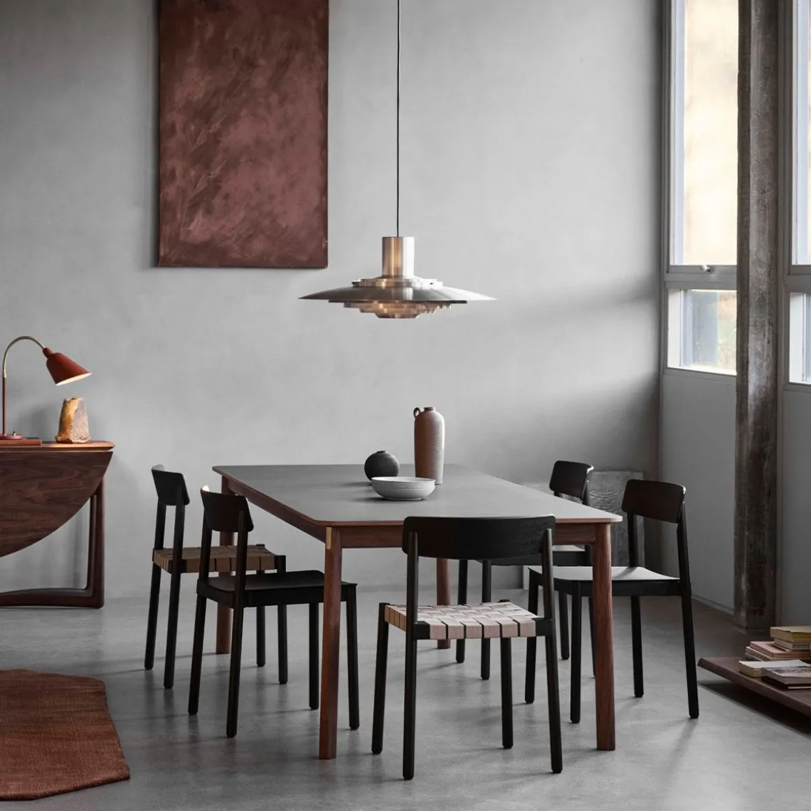 Cette table à manger extensible de Hee Welling utilise une technique d’extension papillon pour offrir des sièges à plus de personnes. Sa base en bois est surmontée d’un plateau en stratifié lisse. Les pieds en forme de goutte et les coins arrondis ajoutent des détails de conception subtils.