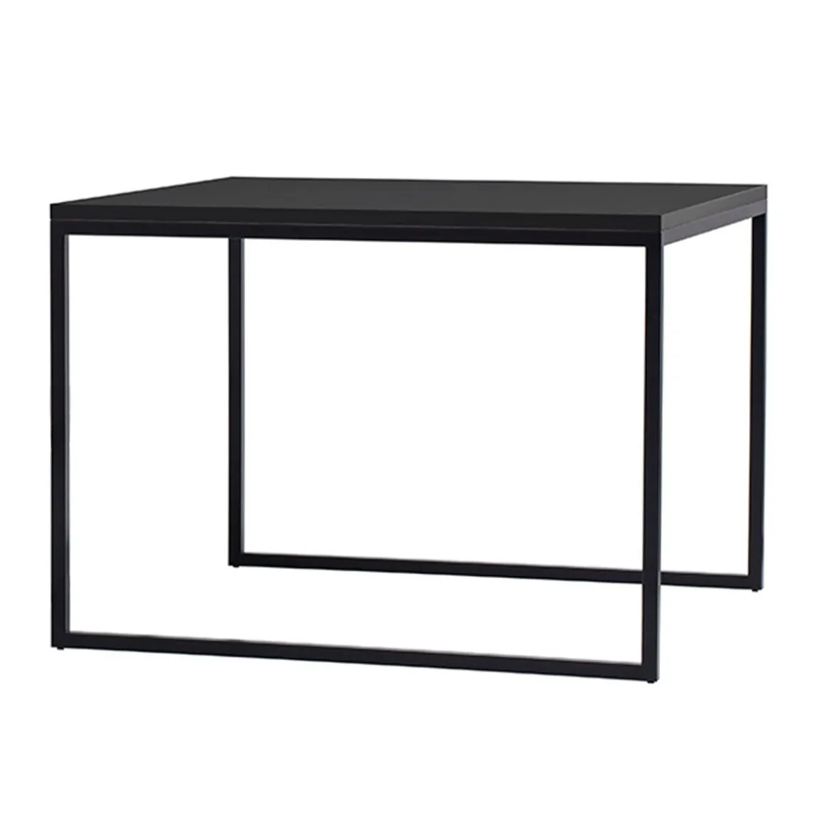 Matériaux : plateau en panneaux en conglomérat de bois à densité moyenne, base en tuyau métallique carré, pieds en plastique