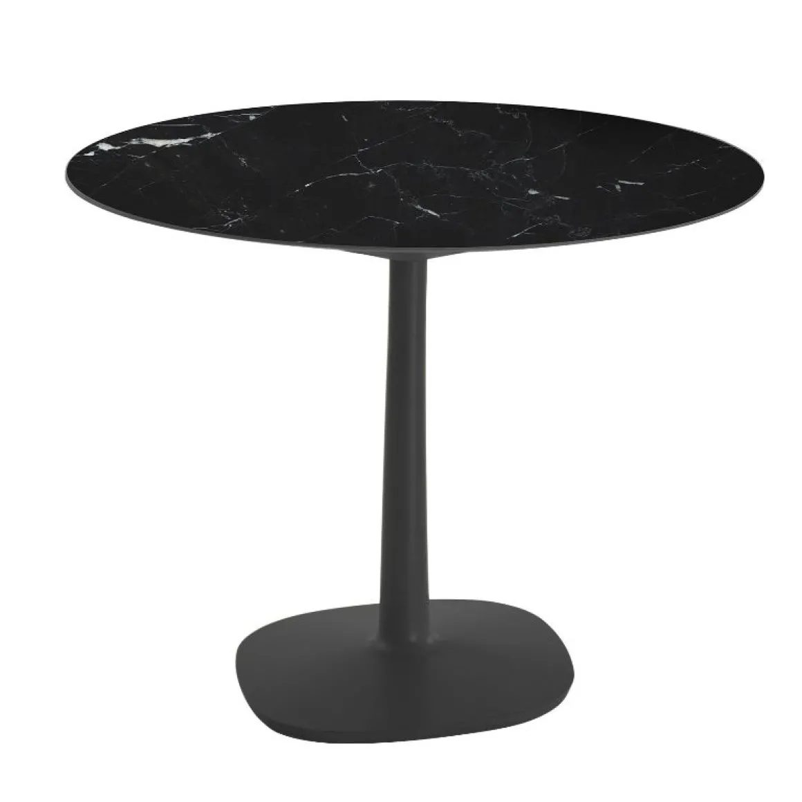 Matériaux : plateau en grès, pied en aluminium moulé sous pression peint opaque