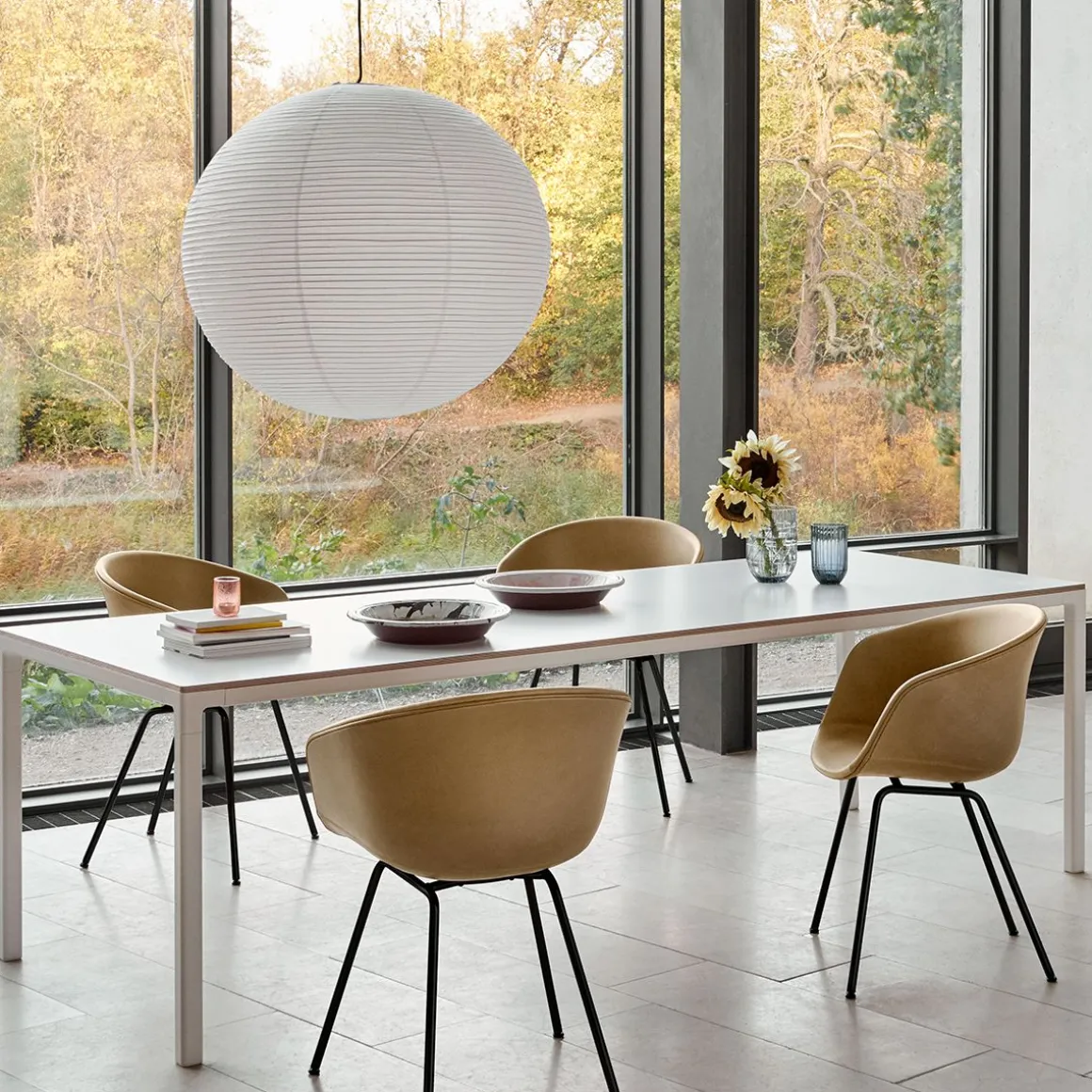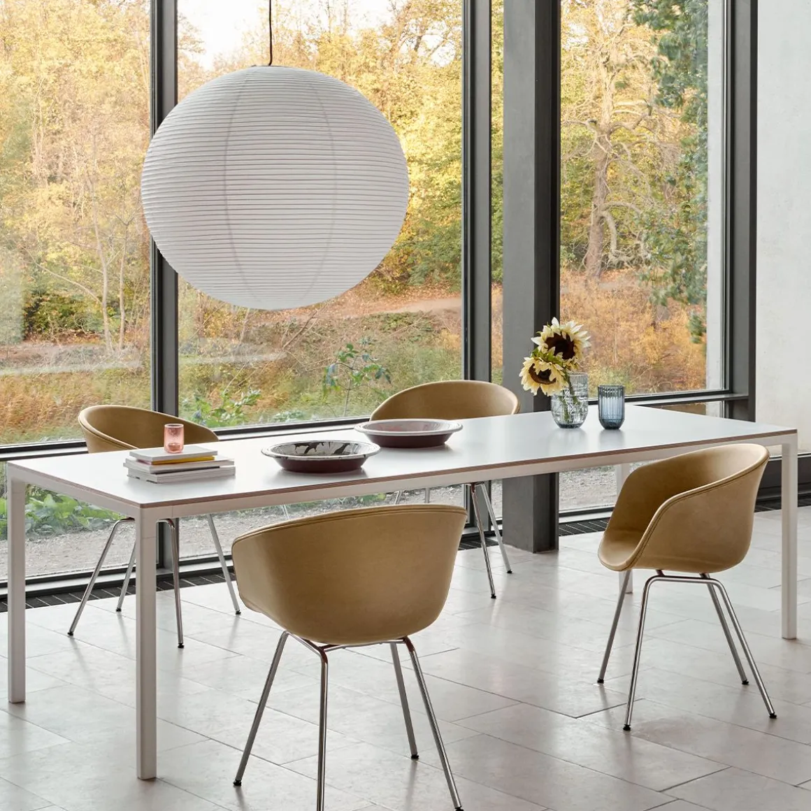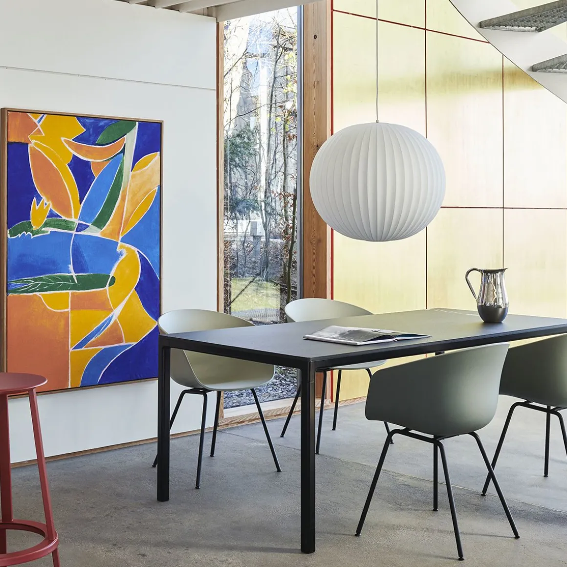Table T12 de Hay. Définie par sa pure fonctionnalité, la table T12 de HAY sert de table à manger ou de travail dans une composition serrée et une esthétique claire. Les pieds, qui sont positionnés dans les coins pour asseoir autant de personnes que possible, et la taille généreuse qui offre un espace de travail optimal sont fondamentaux pour la conception de table. Ces facteurs le rendent particulièrement adapté à une utilisation dans des salles de réunion ou comme table à manger pour les grandes familles.