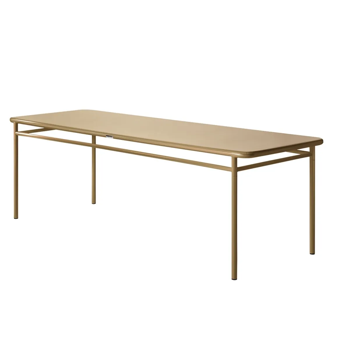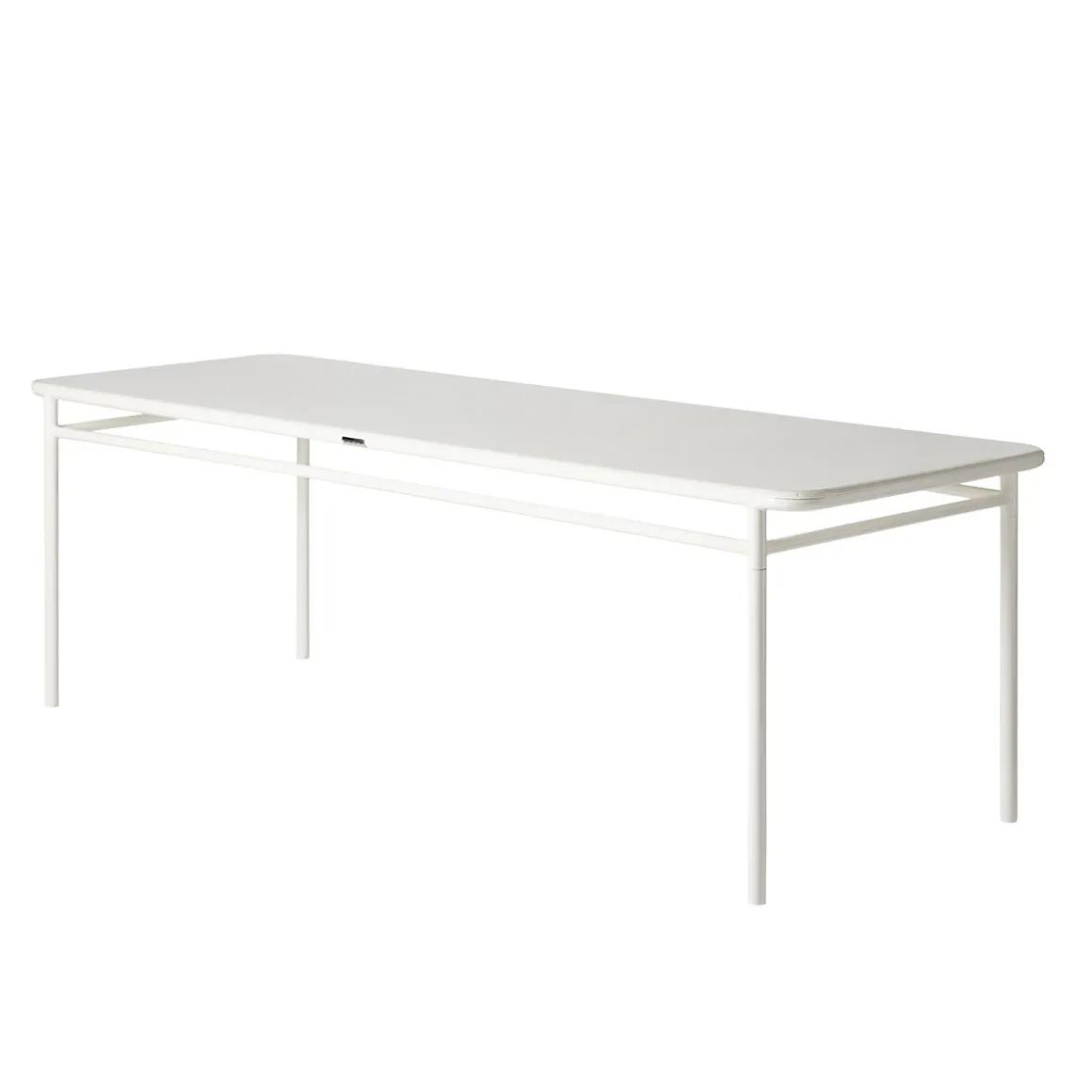 Née de la célèbre collection T37, dont les chaises ont autrefois orné les jardins parisiens durant la 24e Exposition Universelle, la table monacale T37 fait partie des derniers modèles conçus par le studio TOLIX en 2023. Alliant histoire et modernité, cette table en acier est un témoignage éloquent du savoir-faire artisanal des ateliers, que l’on retrouve dans la finition du plateau intégralement ourlé à la main. Sa conception, souligne sa polyvalence et sa durabilité. L’aspect robuste de ses pieds déclinés en diamètre 35 mm contrebalance l’étroitesse et la grande longueur de son plateau lui conférant son aspect de table d’abbaye ou de drapier. Pouvant accueillir jusqu’à dix convives, elle est le reflet d’une élégance fonctionnelle, digne de la renommée de la collection T37. Avec sa silhouette affirmée, elle ne manque pas de rappeler l’empreinte intemporelle et l’identité forte de sa lignée, tout en s’inscrivant résolument dans le présent. Une table qui, sans doute, traversera les âges avec la même grâce.