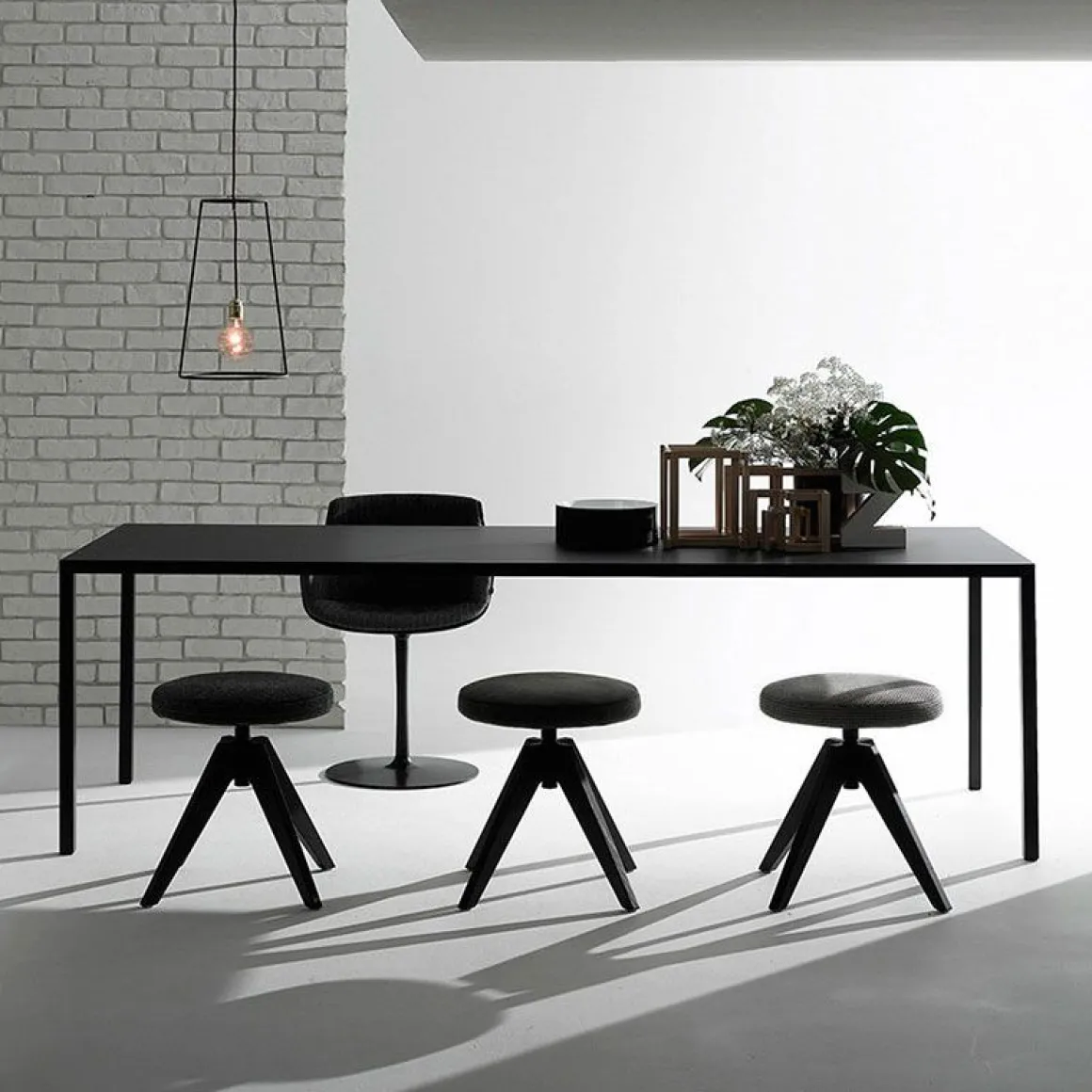 “Concevoir en simplifiant, extrapoler l’essence”. Ce fut la genèse de Tense de Piergiorgio et Michele Cazzaniga. Tense représente le noyau, le concept principal de l’idée de table, donc unique et minimale pour s’adapter à de nombreux espaces différents, résidentiels ou contractuels.Tense, c’est l’âme de la table, qui s’exprime à travers une énorme cohérence en termes de formes et de finitions, celle-ci dans un seul matériau et identique pour les pieds et le dessus, procurant une sensation de compacité et de modernité. Dans son essence, cette table cache un cœur technologique, encastré dans le panneau supérieur, qui permet, grâce à la tension interne, d’atteindre de grandes dimensions, jusqu’à 4 mètres. Et, grâce à l’épaisseur minimale du plateau, Tense conserve dans tous les cas un poids et une stabilité élevés. La possibilité de choisir différentes tailles et couleurs permet à Tense de répondre aux besoins de chaque client.