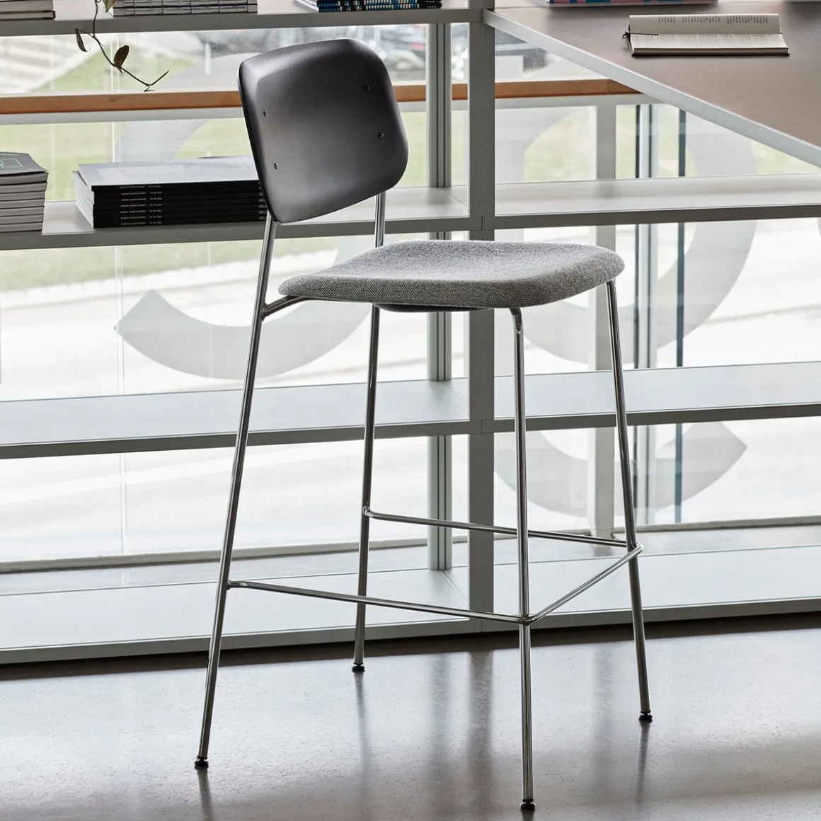 Tabouret de bar soft edge P10 avec revêtement de Hay. Doté d’un siège et d’un dossier en plastique (PP) dans une large gamme de couleurs, le tabouret de bar Soft Edge P10 a de longs pieds en acier qui améliorent l’esthétique minimaliste et créent une sensation de légèreté, tandis que le dossier bas et de soutien améliore la stabilité et confort. Sa force et sa fonctionnalité garantissent des années d’utilisation quotidienne dans divers environnements publics et privés – de la maison aux espaces d’entreprise, aux cafés et aux institutions.