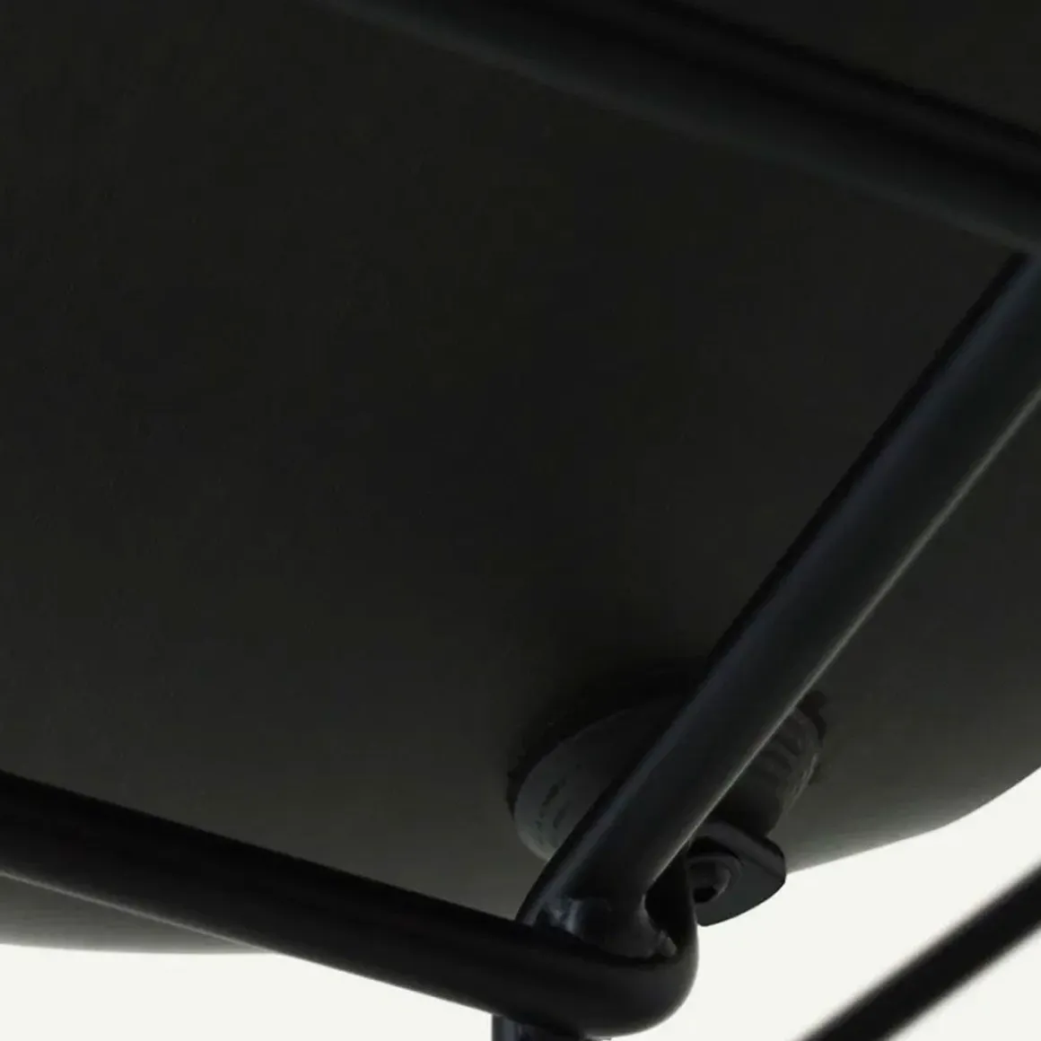 Coloris : assise noire, blanche ou rouge corail avec pieds noirs ou cuivres