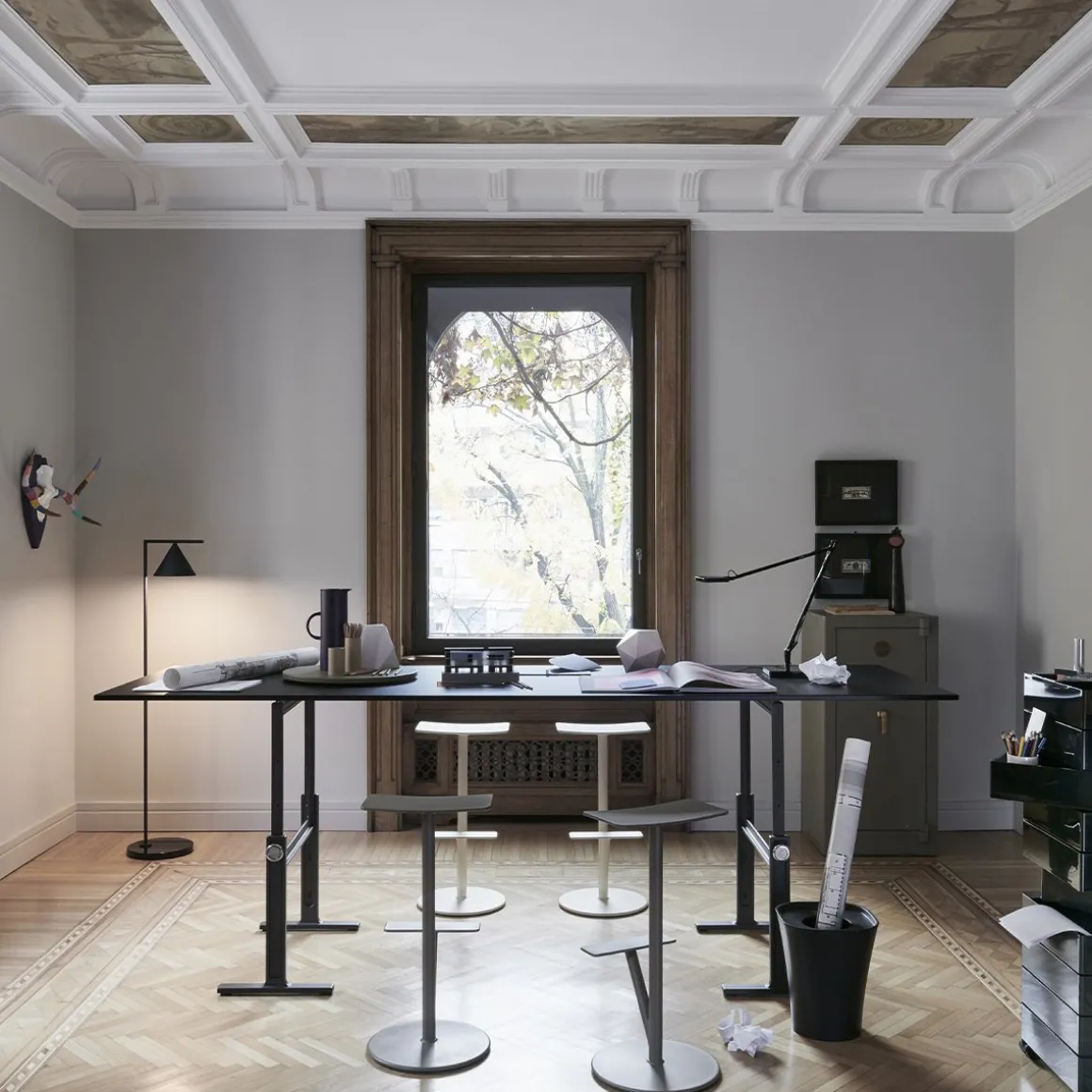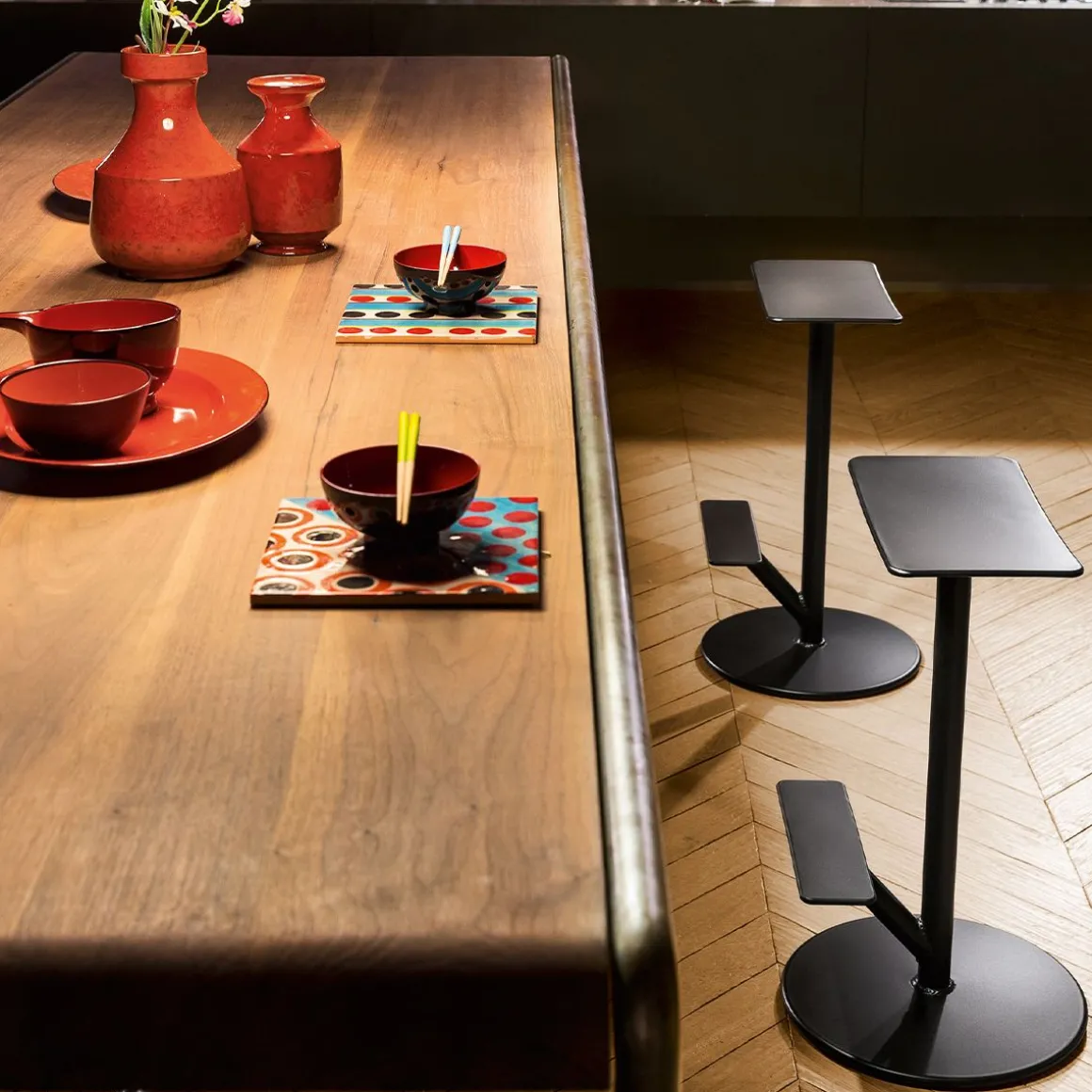 Le nom du projet de notre tabouret de bar «Sequoia» était «Forest», car la division de la tige en deux tubes nous rappelait une branche solide poussant hors d’un tronc d’arbre. Sequoia a un contour graphique unifié et clairement reconnaissable – il nous rappelle un caractère calligraphique. Le repose-pied a la forme d’une plaque de pied.Cela donne une certaine liberté de mouvement: c’est comme si l’on soulevait un segment du sol. Pour nous, la similitude de forme entre le siège et le repose-pieds est une caractéristique importante car elle donne plus de sens à la branche comme la division de la tige. Nous nous sommes penchés sur diverses technologies de matériaux avant d’atterrir sur une construction qui s’inspire de la façon dont les cadres de vélo sont assemblés.