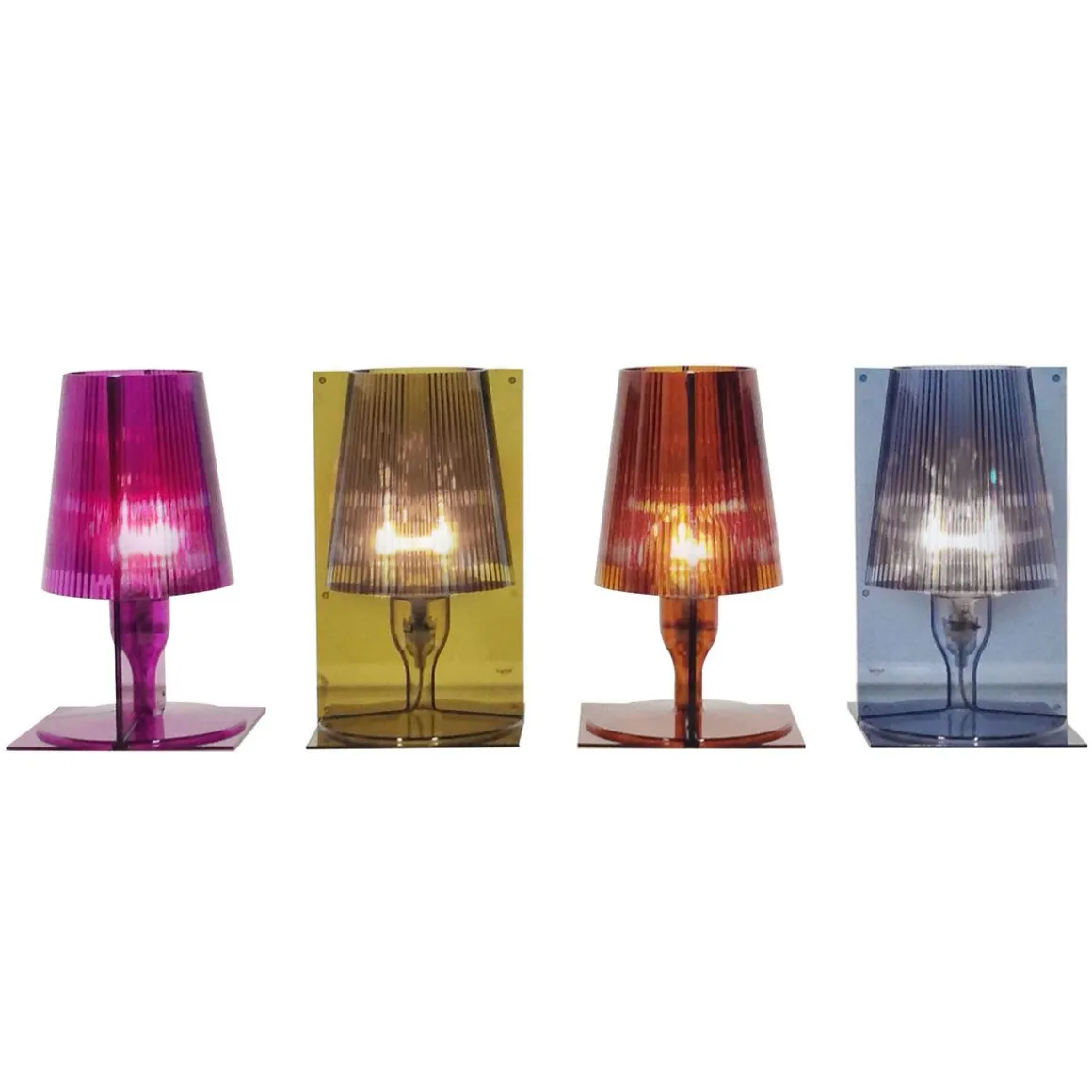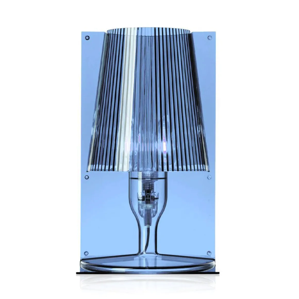 L’image classique de la lampe de chevet est revisitée par la technologie Kartell qui la transforme en un produit industriel, réalisé en polycarbonate transparent ou opaque. Le plissé interne du diffuseur rend cette lampe précieuse créant, une fois allumée, un jeu de reflets. L’excellent rapport qualité/prix et l’emballage conçu pour un produit prêt à emporter contribuent à faire de Take Lampe une parfaite idée cadeau.