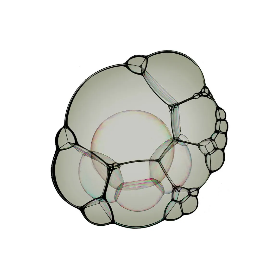 Une seule bulle de savon possède une forme circulaire parfaite, représentée dans le tapis à bulles. De beaux motifs naturels sont créés en raison de leur capacité à adopter une forme qui rend la somme de leurs surfaces aussi petite que possible. Après un examen plus approfondi, ils sont remplis d’arcs-en-ciel tourbillonnants de couleur – le chaos à son meilleur. Ces motifs de collision sont causés par la lumière qui rebondit dans et hors des murs de la bulle et créent une gamme de couleurs des plus magnifiques. Conçu par Sjoerd Vroonland.