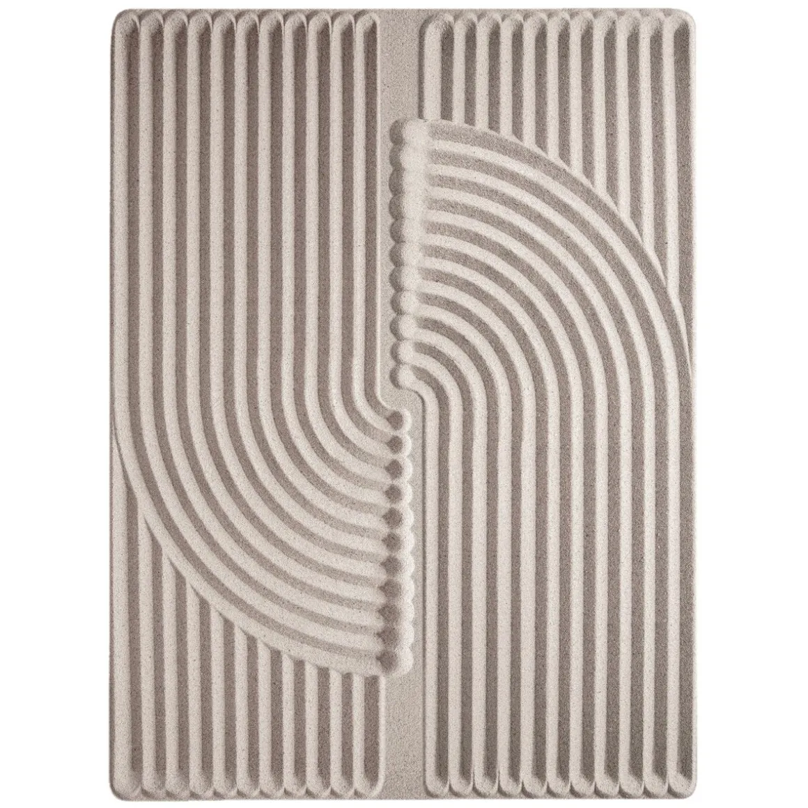 Nous avons tous des souvenirs d’enfance où nous avons joué avec le sable sur les plages, créant toutes sortes de créatures, de formes et de formes. Quelque chose de magique s’y passe dans le sable qui anime notre imaginaire. La nature du sable est connue pour sa fluidité et sa cohésion. Ces tapis montrent l’intensité entre son comportement naturel, sa gravité et la manipulation des motifs de mise en forme. Mettre en lumière ce sur quoi vous voulez vous concentrer pour révéler la beauté naturelle des éléments. Le modelage du sable est par définition une expérience sensorielle.
