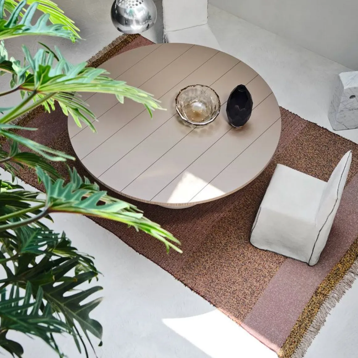 Tapis eco 02 de Gervasoni par Elena Sanguankeo. Les tapis ECO sont le fruit d’une recherche approfondie, menée par l’entreprise en collaboration avec la designer. D’abord conçus et réalisés sur des métiers à tisser manuels, ils ont ensuite été développés sur un métier industriel reconfiguré et poussé à l’extrême pour créer des textures à l’aspect artisanal. Fabriqués en jute et en propylène, ils sont disponibles en plusieurs coloris. Une collection de tapis frais, légers et transportables.