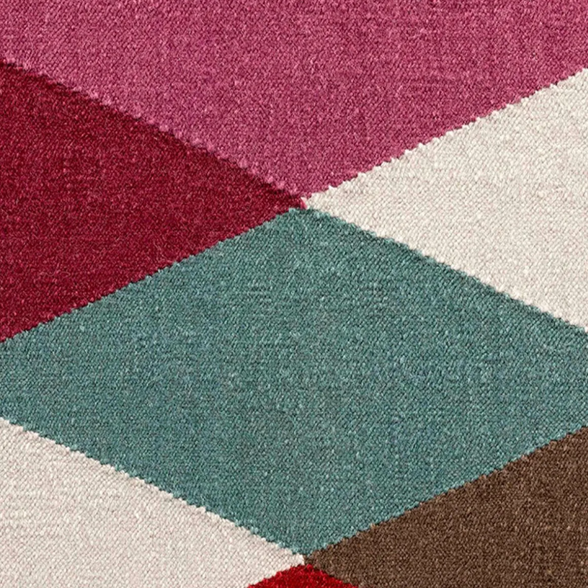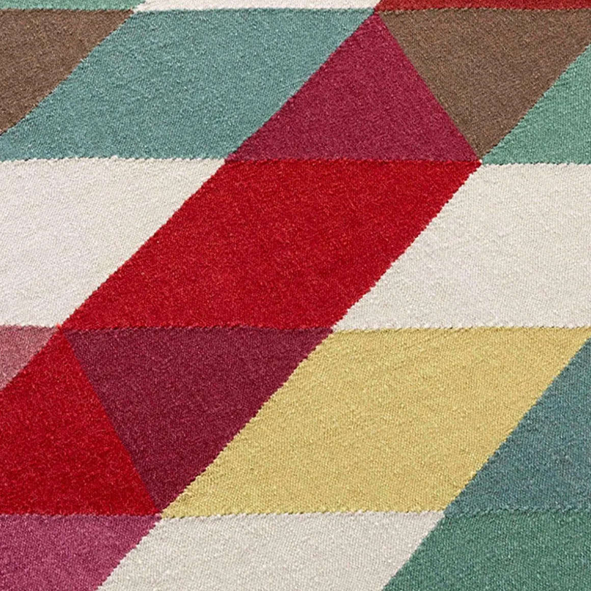 Happy génère un ensemble de transparences à partir de rubans obliques qui se chevauchent. De nouveau Kilim, les couleurs neutres alternent avec des couleurs plus intenses, qui se déclinent en différents tons et créent une sensation de profondeur. Le fort caractère graphique de Happy dénote le goût de Sandra Figuerola pour les motifs géométriques, ainsi que sa maîtrise de la couleur.