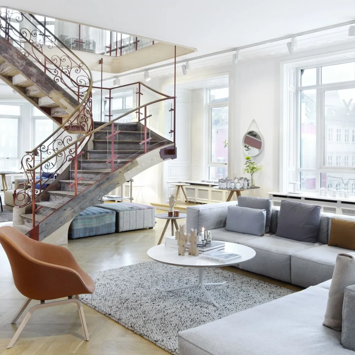 Tapis PEAS de Hay. Peas est un tapis dont les pois sont fabriqués à la main au Népal et en Inde par des artisans locaux. Le feutre de laine est tissé dans différentes nuances de gris donnant à la collection une saveur unique et polyvalente.