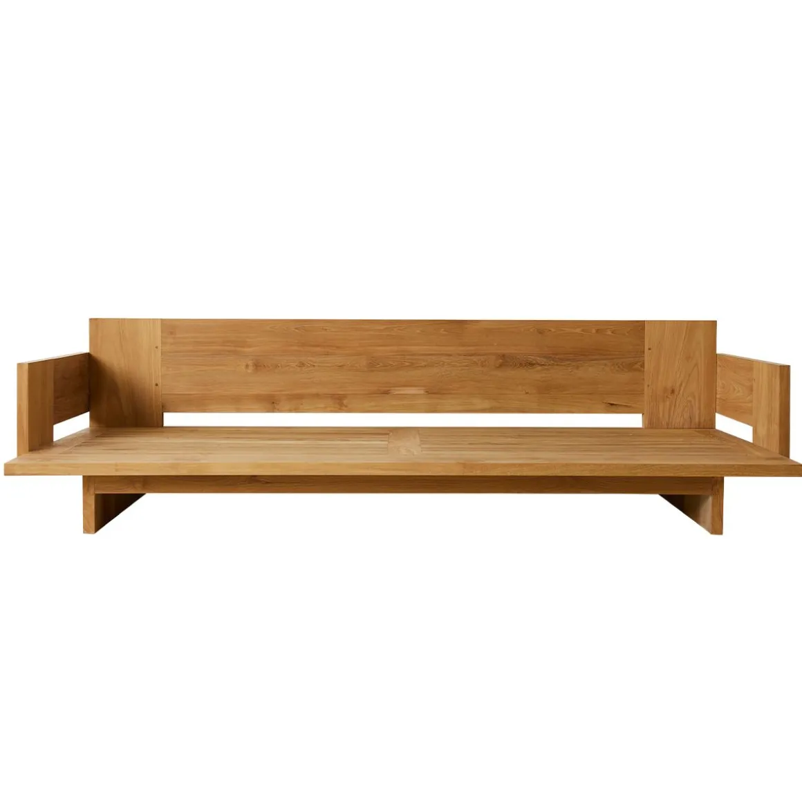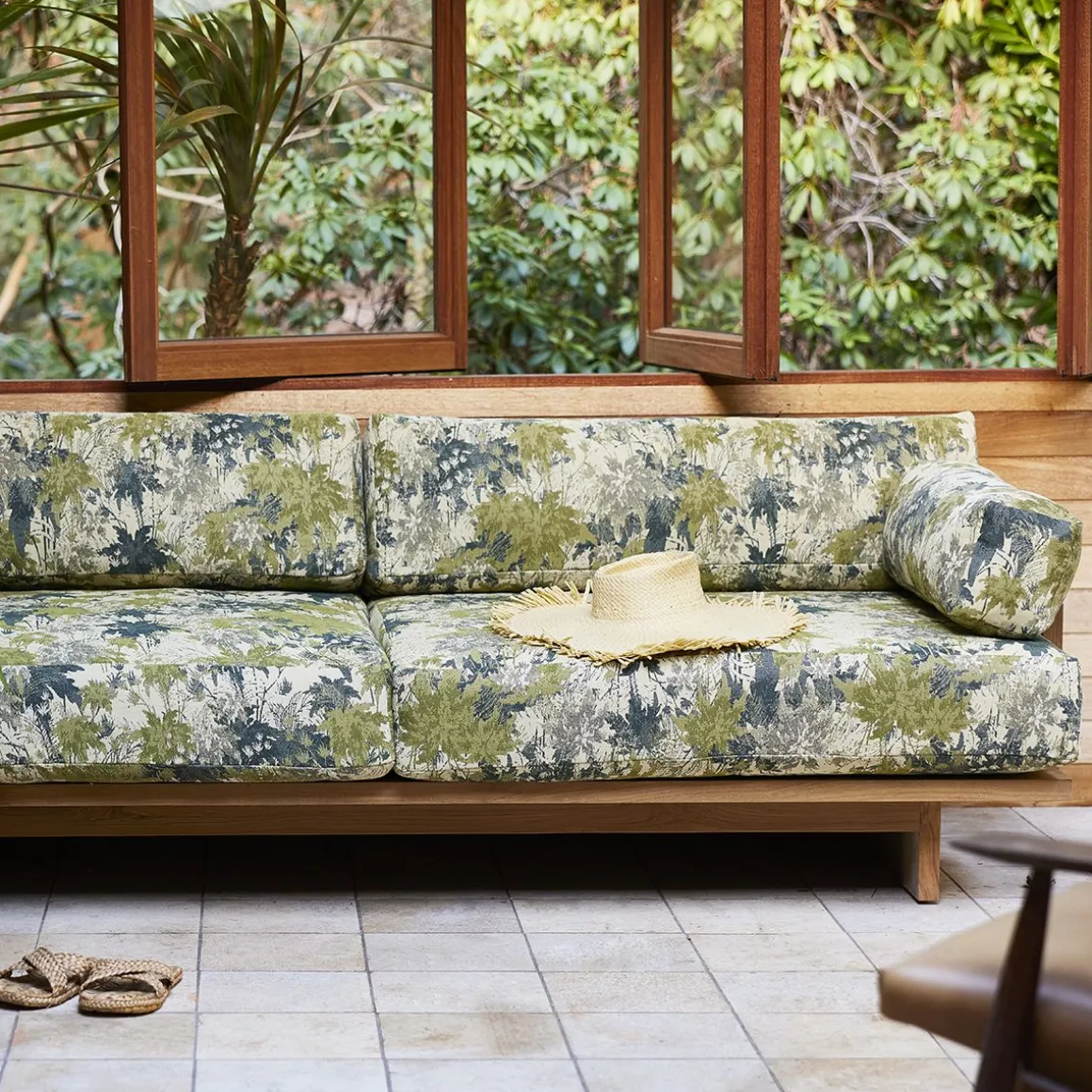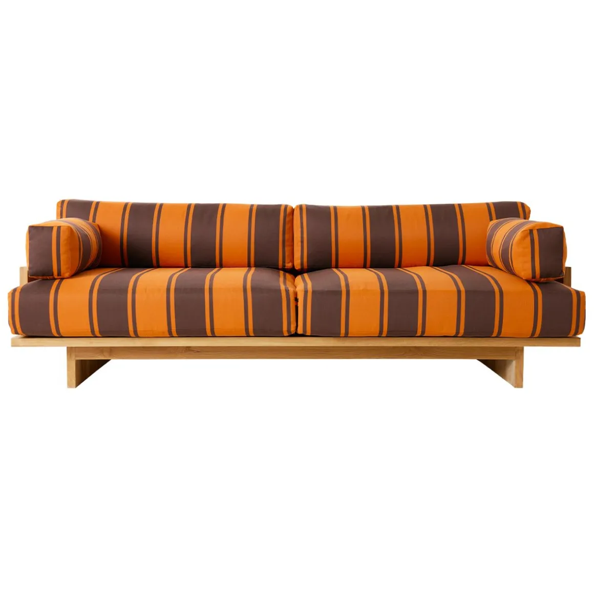 Les bancs et méridiennes d’extérieur sont conçus pour s’intégrer sans effort dans un paysage naturel ou urbain. Destiné à être utilisé sur une plus longue période et à s’embellir au fil des ans. Son cadre en bois de teck épuré embrasse les coussins confortables du canapé, créant un joli coin salon.