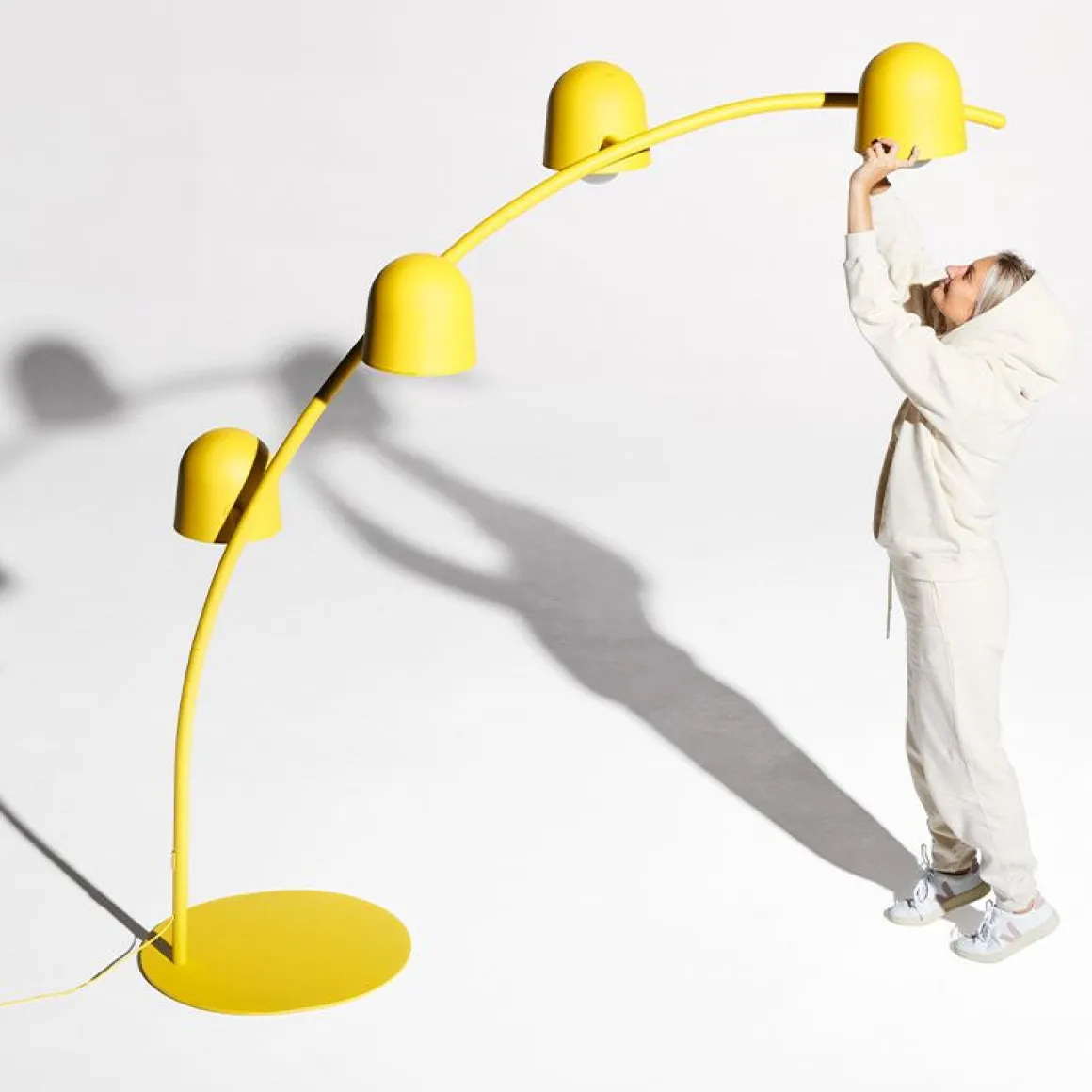 Avec Big Lebow, Fatboy transporte l’éclairage intérieur au niveau supérieur : à 2,34 mètres de haut, pour être exact. L’arc puissant de cette lumière, comme sa base au poids important, est composé d’acier laqué. La douce lumière générée par ses lumières LED se reflète dans les capuchons en aluminium réglables. Ils semblent flotter, donnant l’impression de s’élever le long de l’arc. Beau, mais également fonctionnel. Avec la lampe la plus basse, vous pouvez lire votre journal, tandis que les autres offrent une atmosphère supplémentaire.