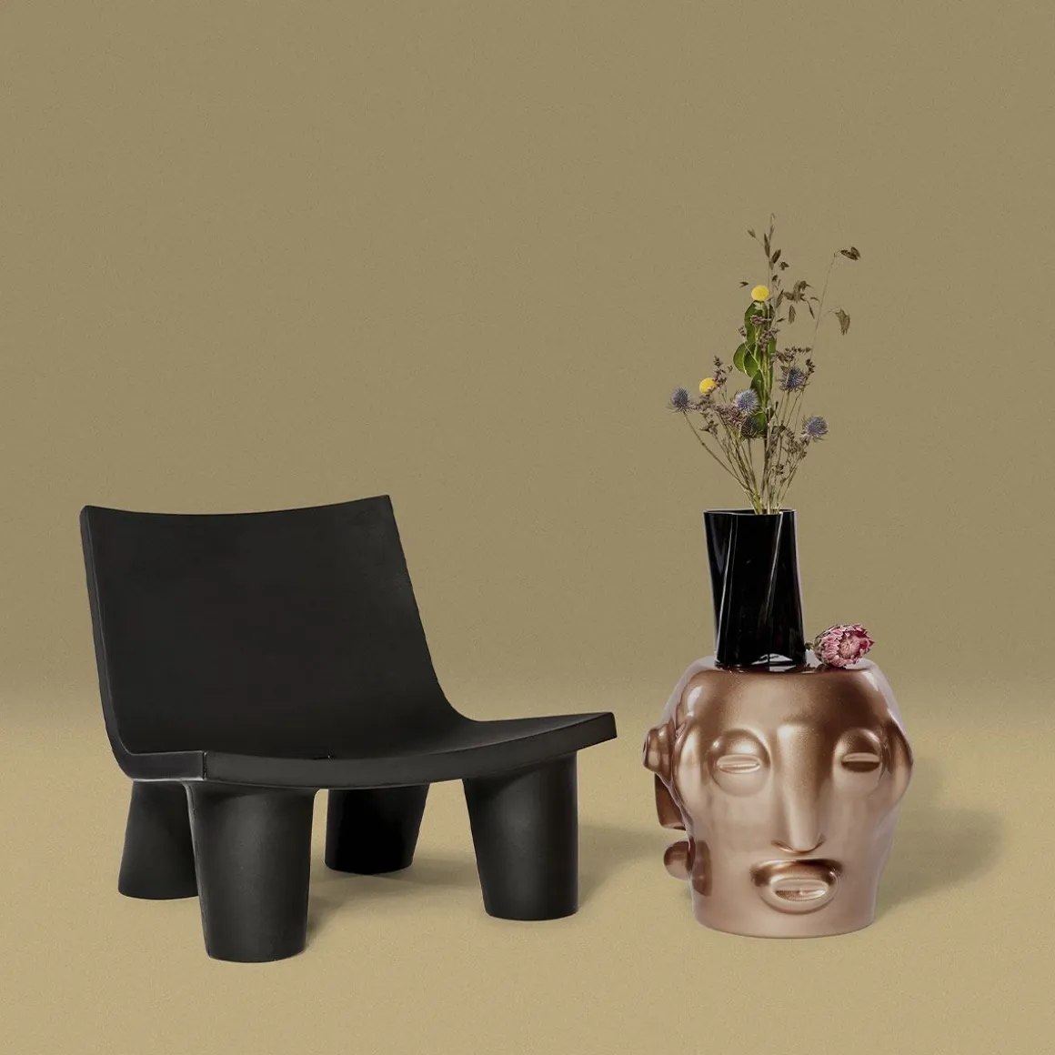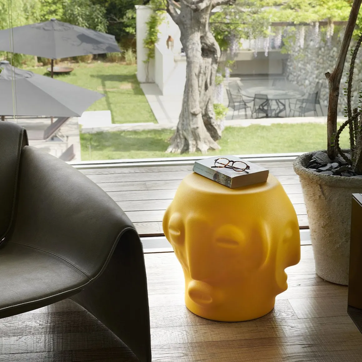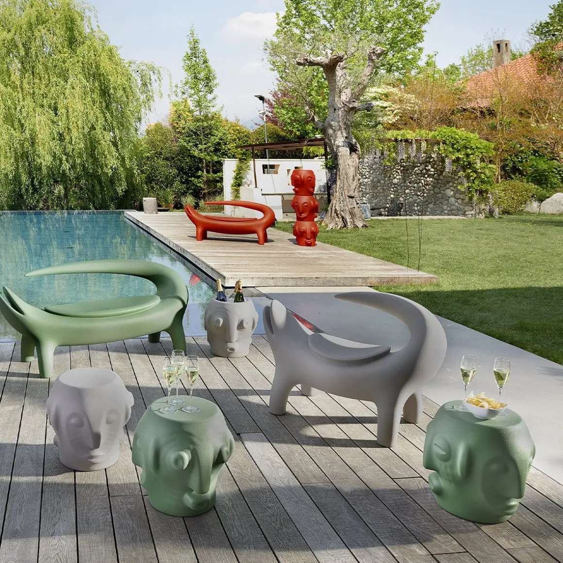 Trois visages, un symbole autour duquel se retrouver. Marcantonio conçoit Threebù, un table basse/ tabouret contemporain, évolution de rituels ancestraux de partage d’espaces et de temps revécus grâce à l’esprit pop de SLIDE et caractérisé par le trait le plus sérieux pour le designer : l’ironie. Avec une saveur ethnique mais extrêmement polyvalente, Threebù est également disponible dans les versions Threebù Pot, Threebù Party porte-bouteille et Threebù Totem lampe au sol. De la connexion constante avec la nature, la nouvelle collection est produite avec un bioplastique issu de la canne à sucre, qui rappelle les couleurs de la Terre et qui, pour la première fois, est utilisé dans le monde du design. Avec le fauteuil Kroko et le canapé Big Kroko, les produits Threebù appartiennent à la collection Afrika.